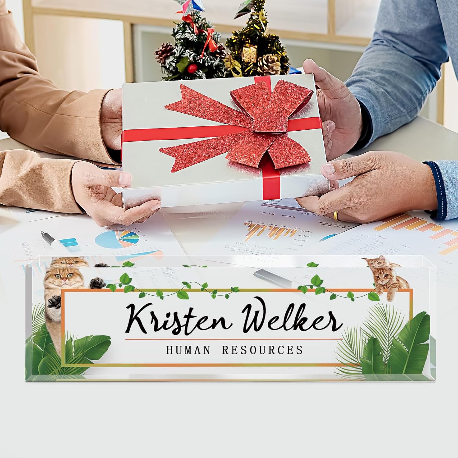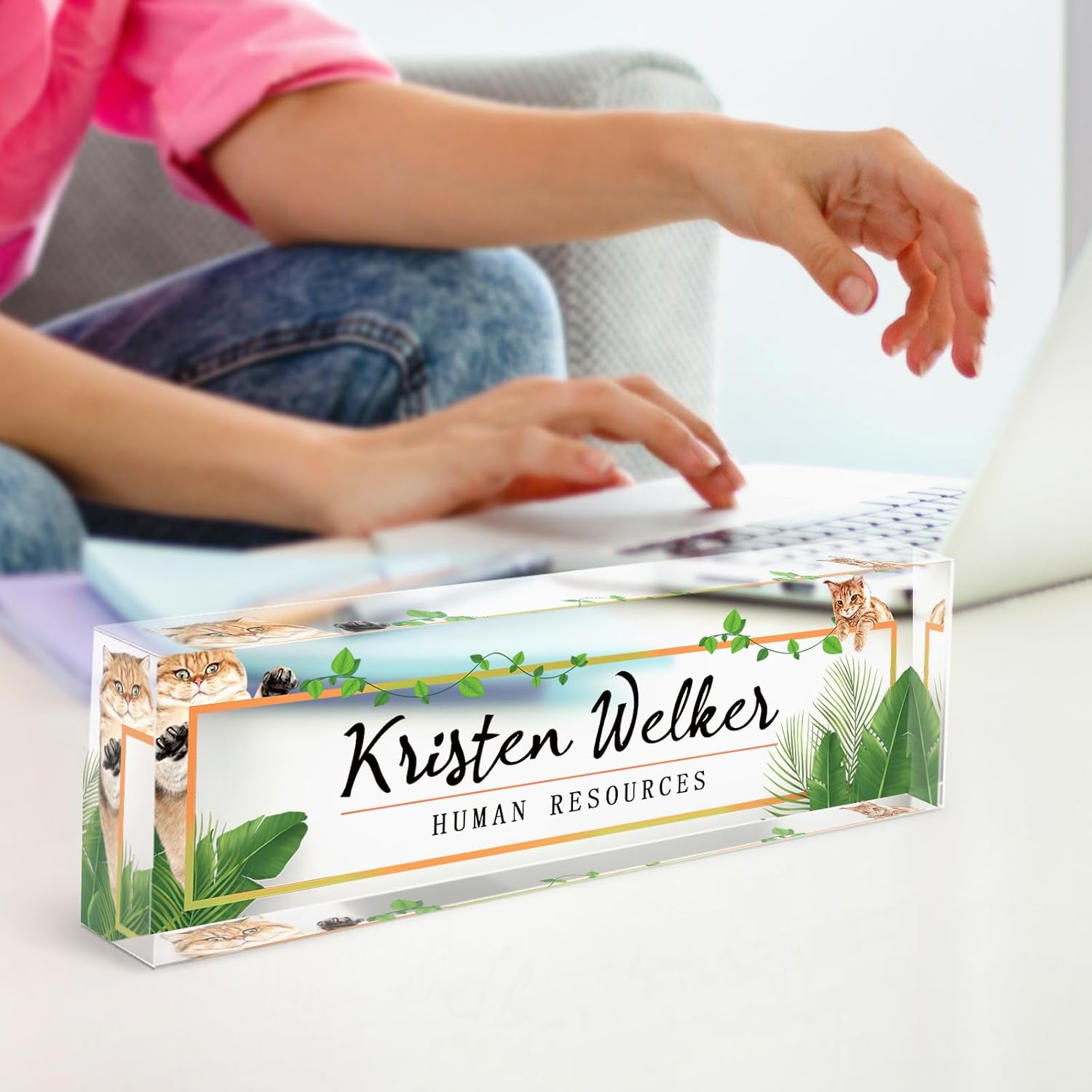 - 🎁HIGH QUALITY - The Personalized Name Sign Plates Are Made Of High-Quality Crystal Clear Acrylic Blocks. This Office Nameplate Will Stand Out On Any Desk! We use high-tech UV printers to print on quality clear acrylic glass so you can visualize your memories.