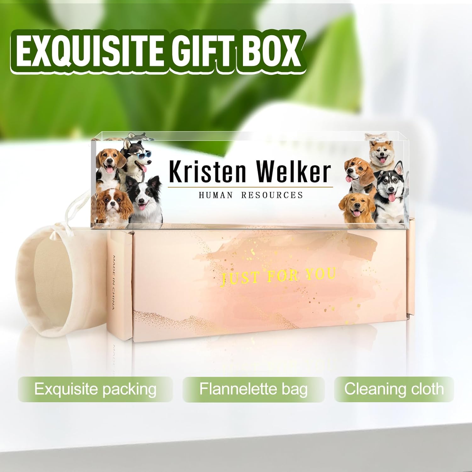 Gowellly Office Desk Name Plate Personalized - Custom Acrylic Name Plates for Desk - Employee Appreciation Gifts - Office Gifts for Teacher,Boss,Nurse,Lawyer,Women Office (Pet-Dog-2)