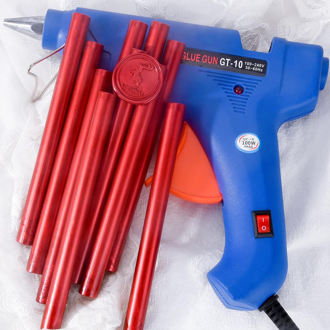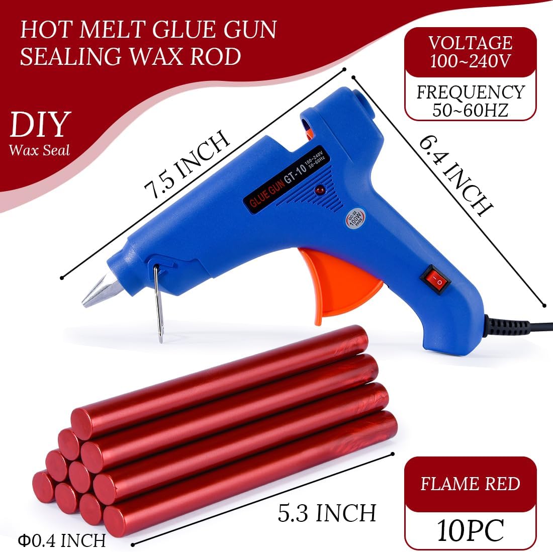 - PACKAGE: This sealing wax kit has 1pcs standard size sealing gun, 10pcs suitable size wax sticks in blood red color. No worry of the mismatch between hot melting glue gun and wax sticks