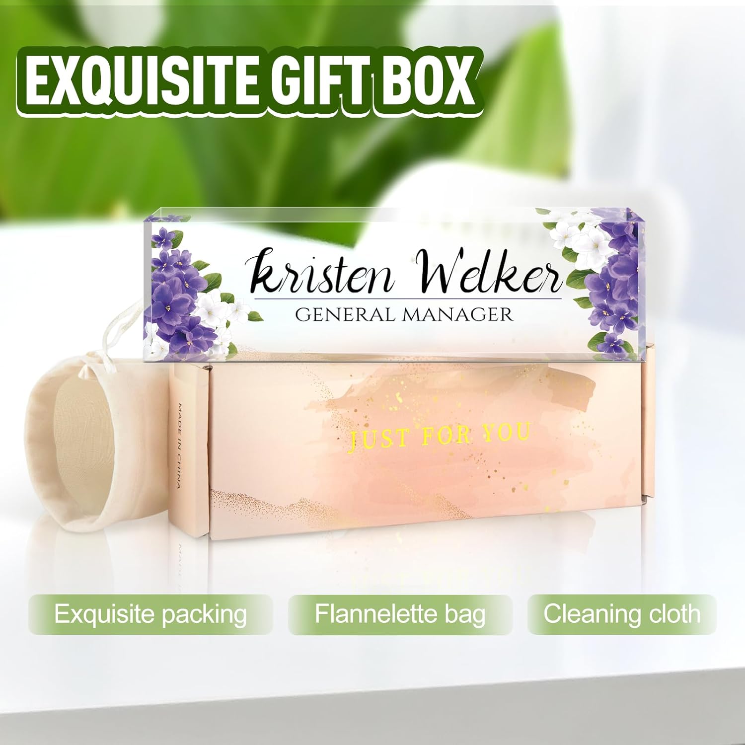 - ✨Personalized Acrylic Desk Name Plate: It's very easy to customize, you only need to choose your favorite design style, and then enter your name/title/company name/good wishes, whatever you want to display. But make sure to enter your custom text the way you want it (uppercase vs. lowercase, full title vs. abbreviation, etc.). Please make sure you write it correctly, we have professional designers to design it, you will be amazed how professional your finished nameplate looks!