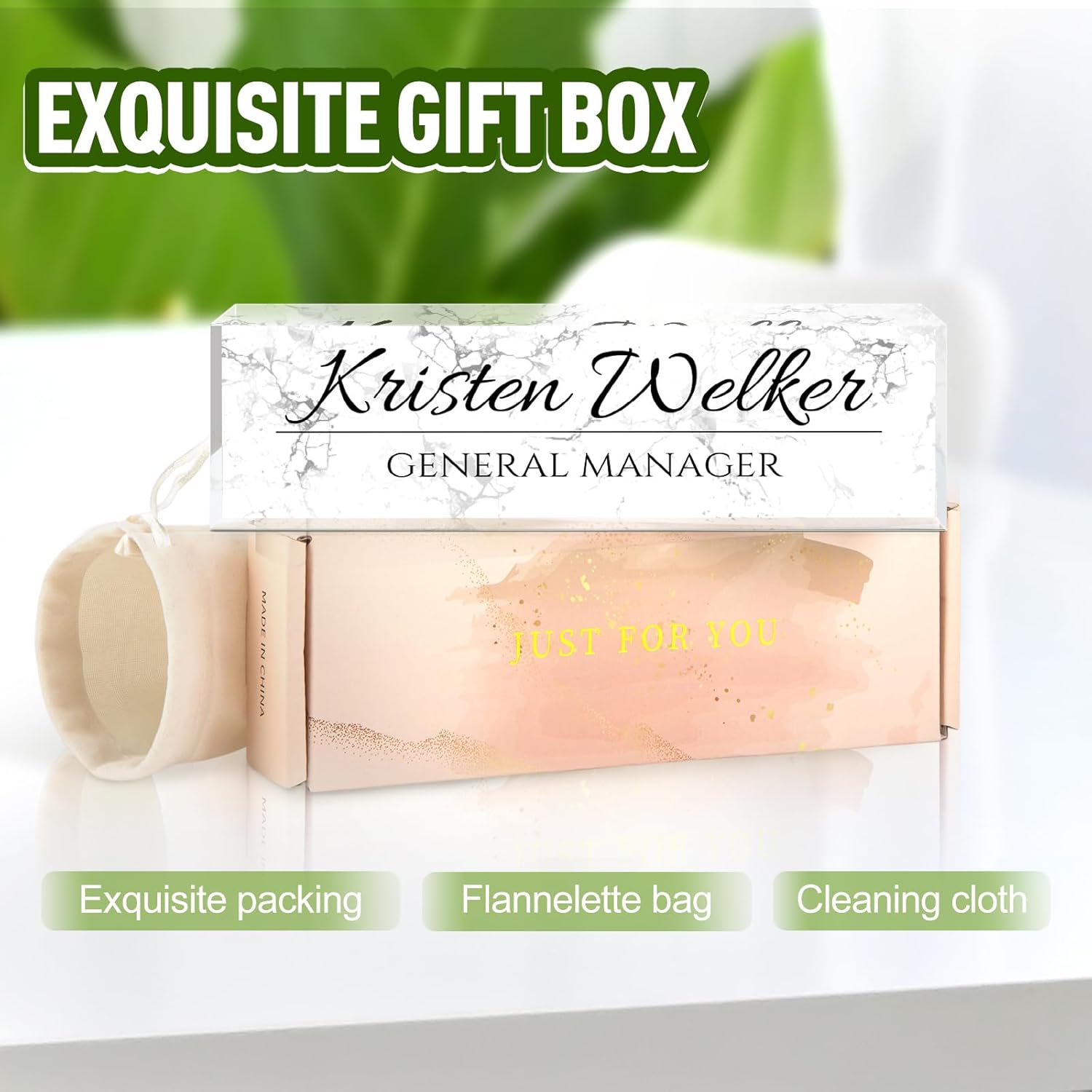 - ✨Personalized Acrylic Desk Name Plate: It's very easy to customize, you only need to choose your favorite design style, and then enter your name/title/company name/good wishes, whatever you want to display. But make sure to enter your custom text the way you want it (uppercase vs. lowercase, full title vs. abbreviation, etc.). Please make sure you write it correctly, we have professional designers to design it, you will be amazed how professional your finished nameplate looks!