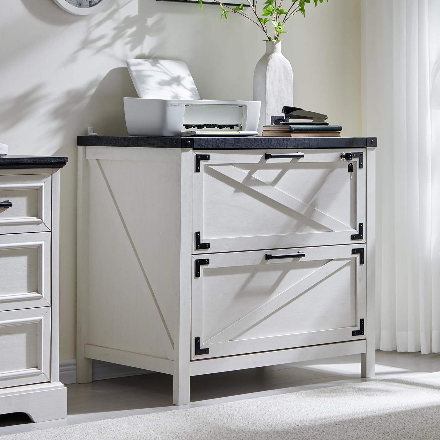 JXQTLINGMU 2 Drawer Farmhouse File Cabinet, Lateral Filing Cabinet with Lock for Home Office, Compatible Legal Letter A4 F4 Size, White
