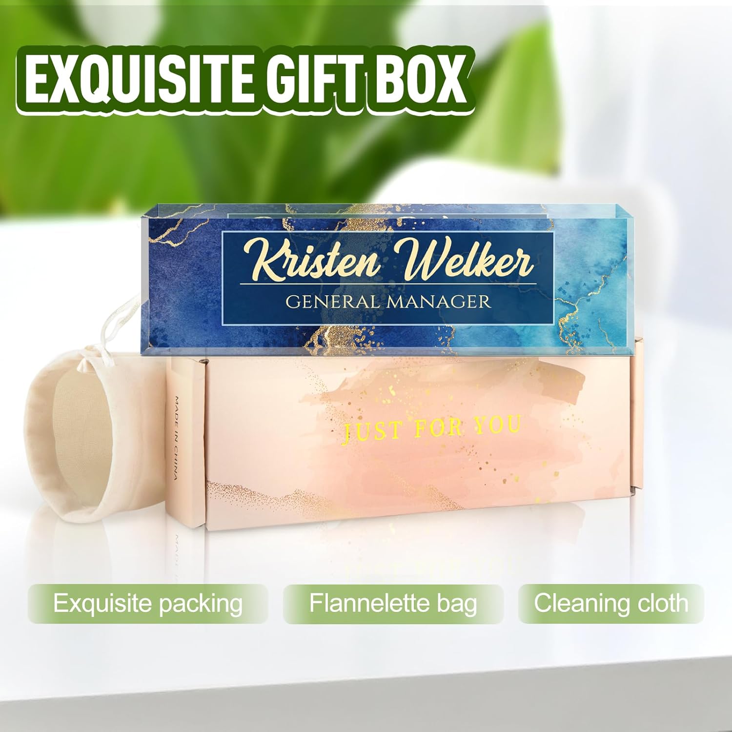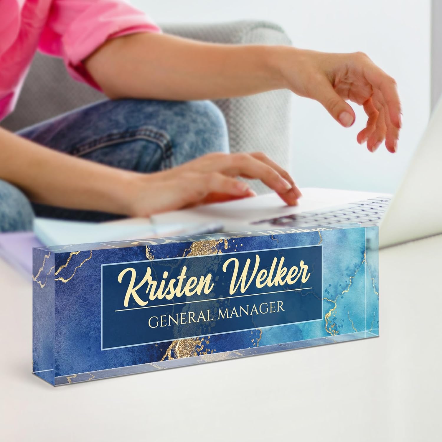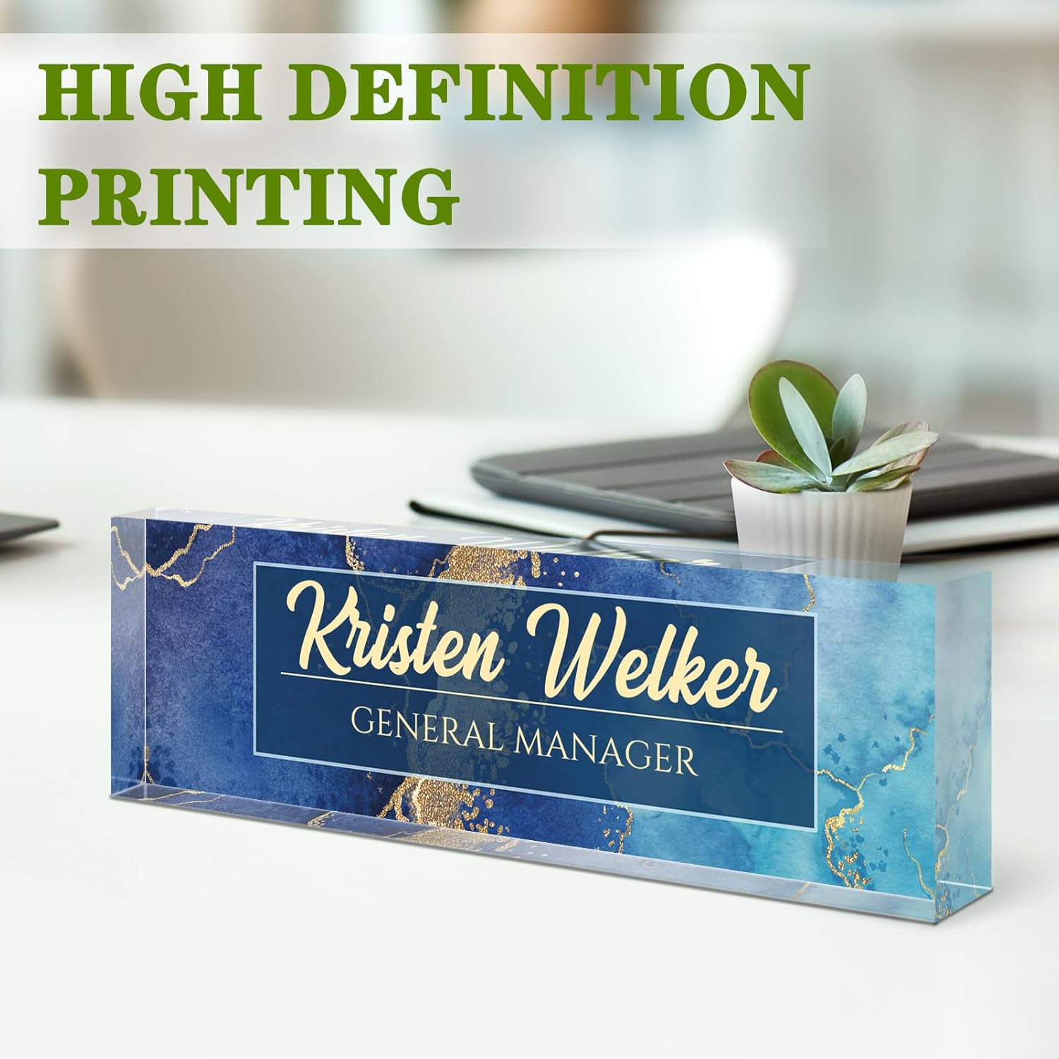 - ✨Personalized Acrylic Desk Name Plate: It's very easy to customize, you only need to choose your favorite design style, and then enter your name/title/company name/good wishes, whatever you want to display. But make sure to enter your custom text the way you want it (uppercase vs. lowercase, full title vs. abbreviation, etc.). Please make sure you write it correctly, we have professional designers to design it, you will be amazed how professional your finished nameplate looks!