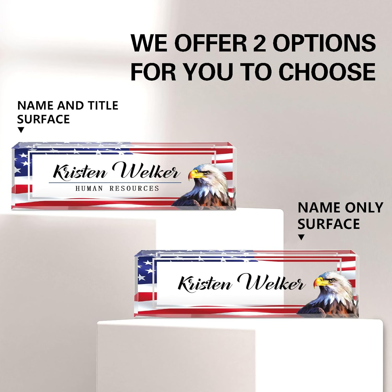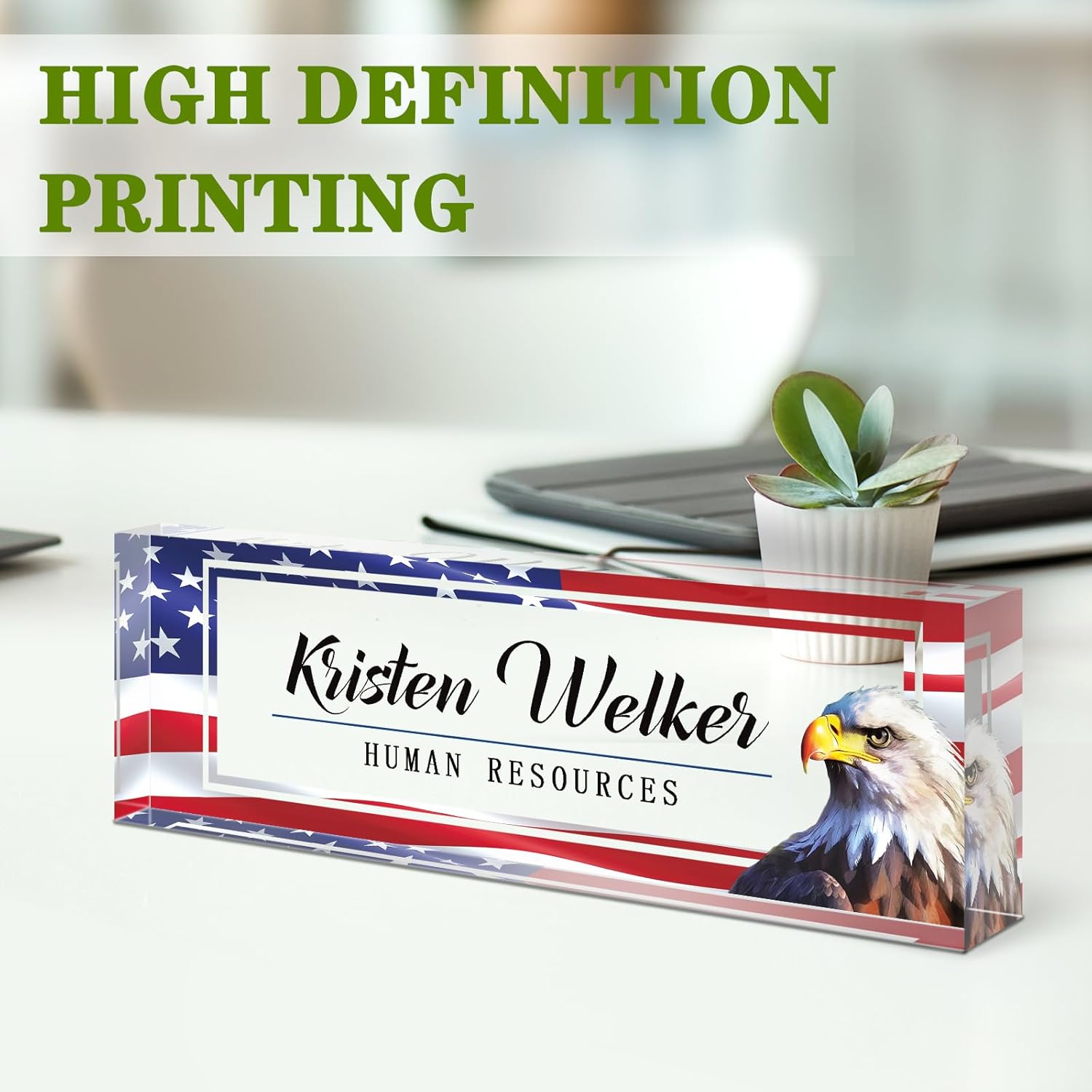 - ✨Personalized Acrylic Desk Name Plate: It's very easy to customize, you only need to choose your favorite design style, and then enter your name/title/company name/good wishes, whatever you want to display. But make sure to enter your custom text the way you want it (uppercase vs. lowercase, full title vs. abbreviation, etc.). Please make sure you write it correctly, we have professional designers to design it, you will be amazed how professional your finished nameplate looks!