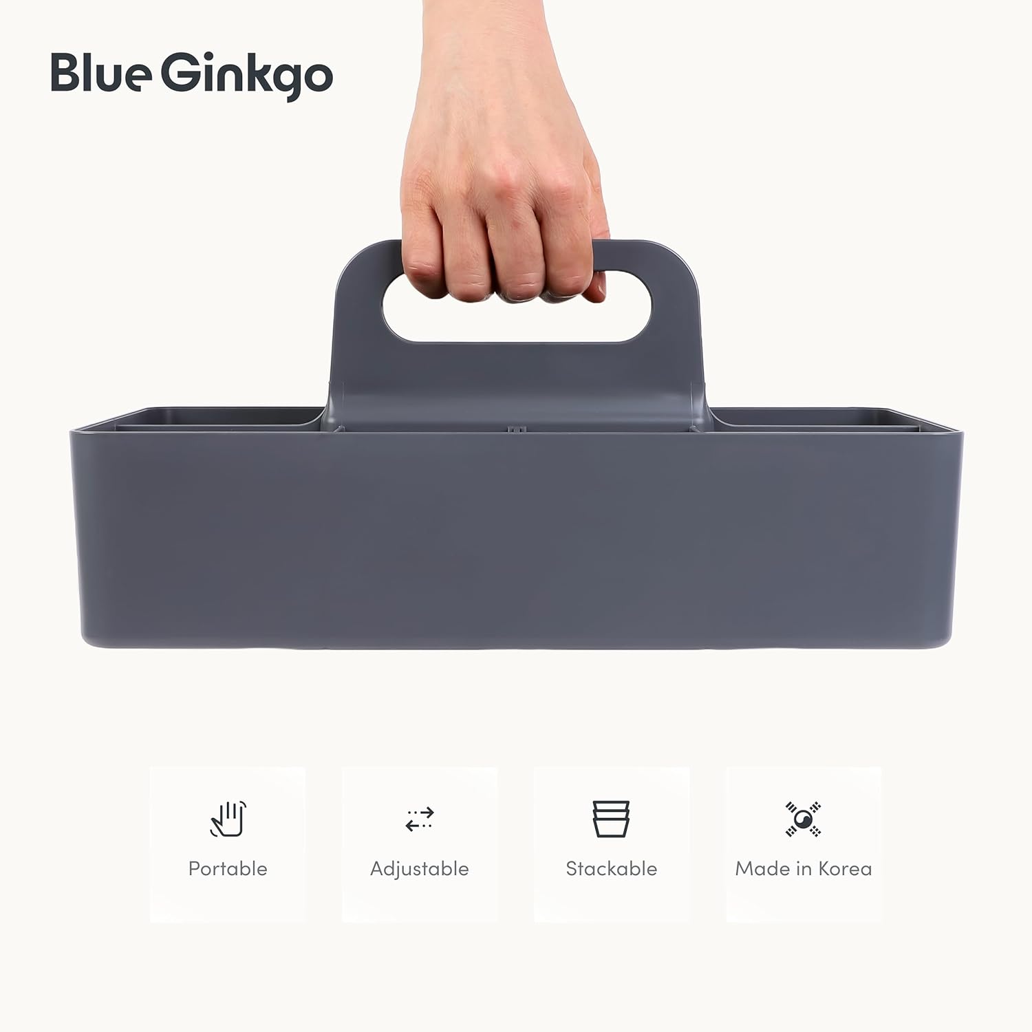 BLUE GINKGO Stackable Organizer Caddy – Korean-Made Portable Tote for Bathroom, Office, Crafts, or School Supplies (Long Rectangle, Gray)
