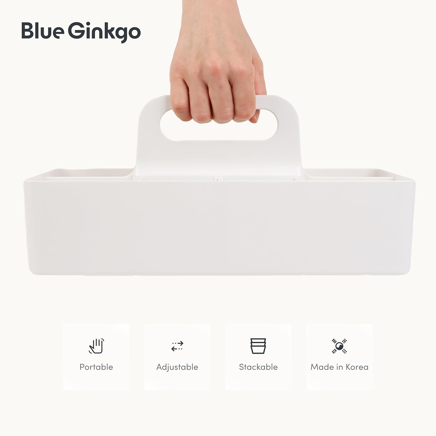 BLUE GINKGO Stackable Organizer Caddy – Korean-Made Portable Tote for Bathroom, Office, Crafts, or School Supplies (Long Rectangle, White)