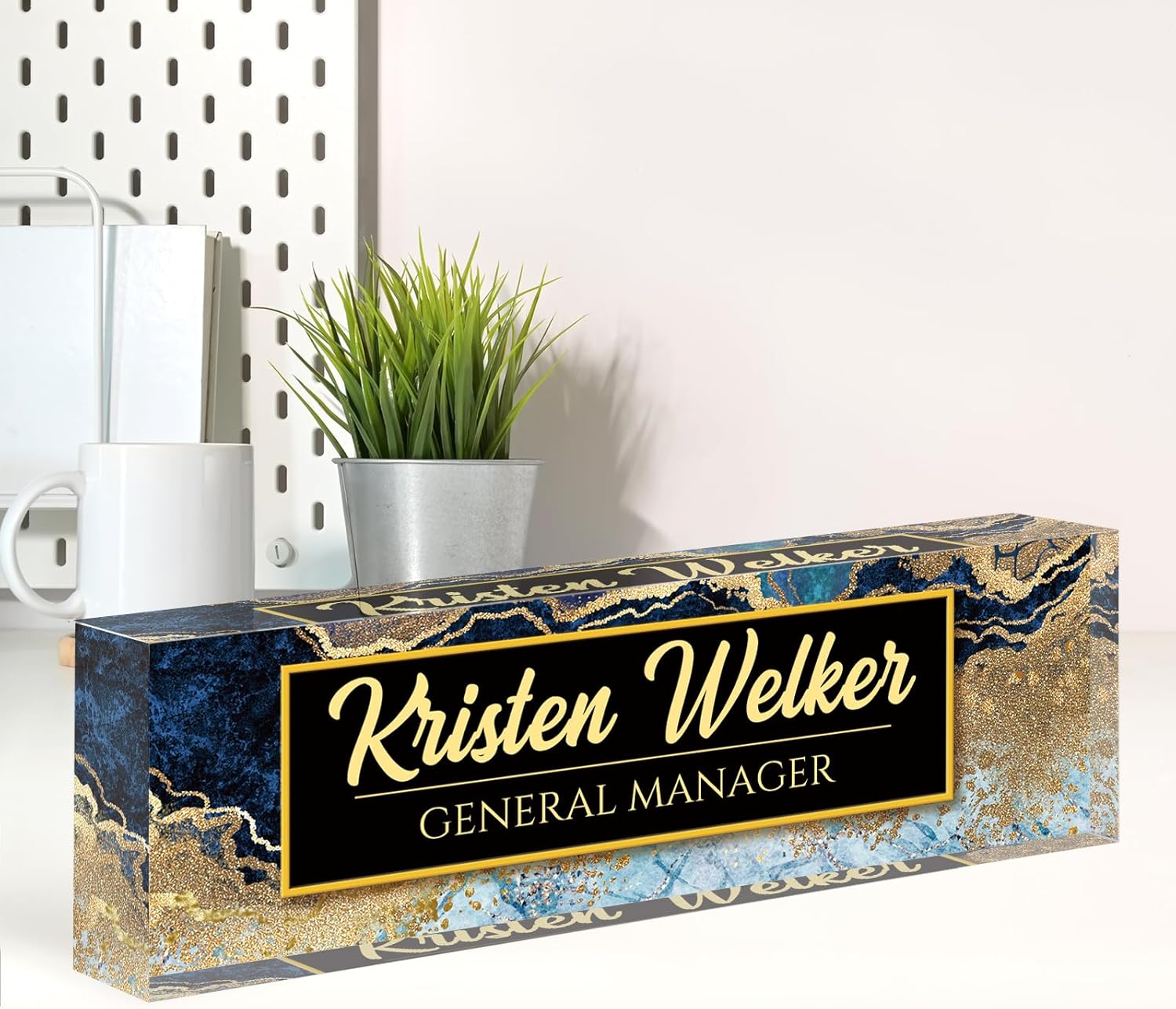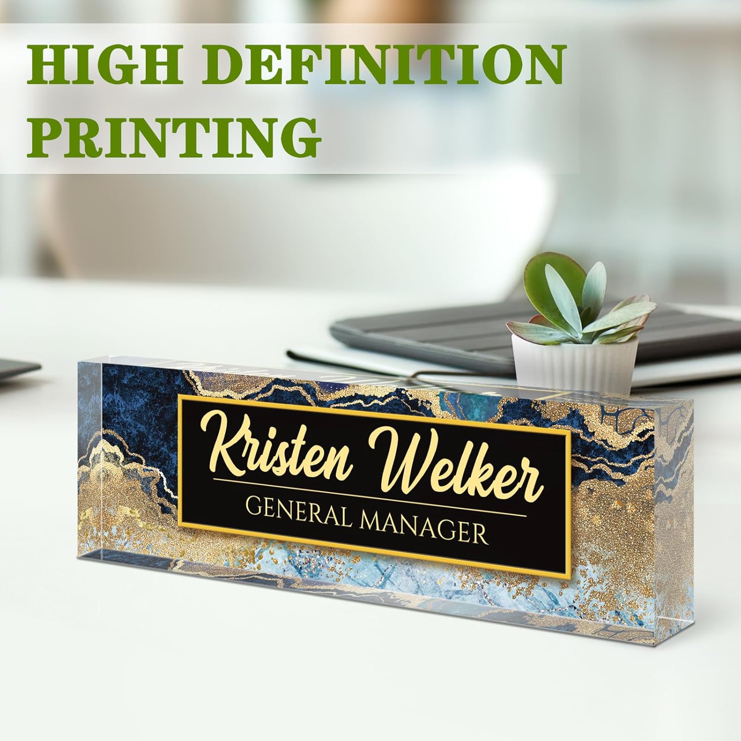 - ✨Personalized Acrylic Desk Name Plate: It's very easy to customize, you only need to choose your favorite design style, and then enter your name/title/company name/good wishes, whatever you want to display. But make sure to enter your custom text the way you want it (uppercase vs. lowercase, full title vs. abbreviation, etc.). Please make sure you write it correctly, we have professional designers to design it, you will be amazed how professional your finished nameplate looks!