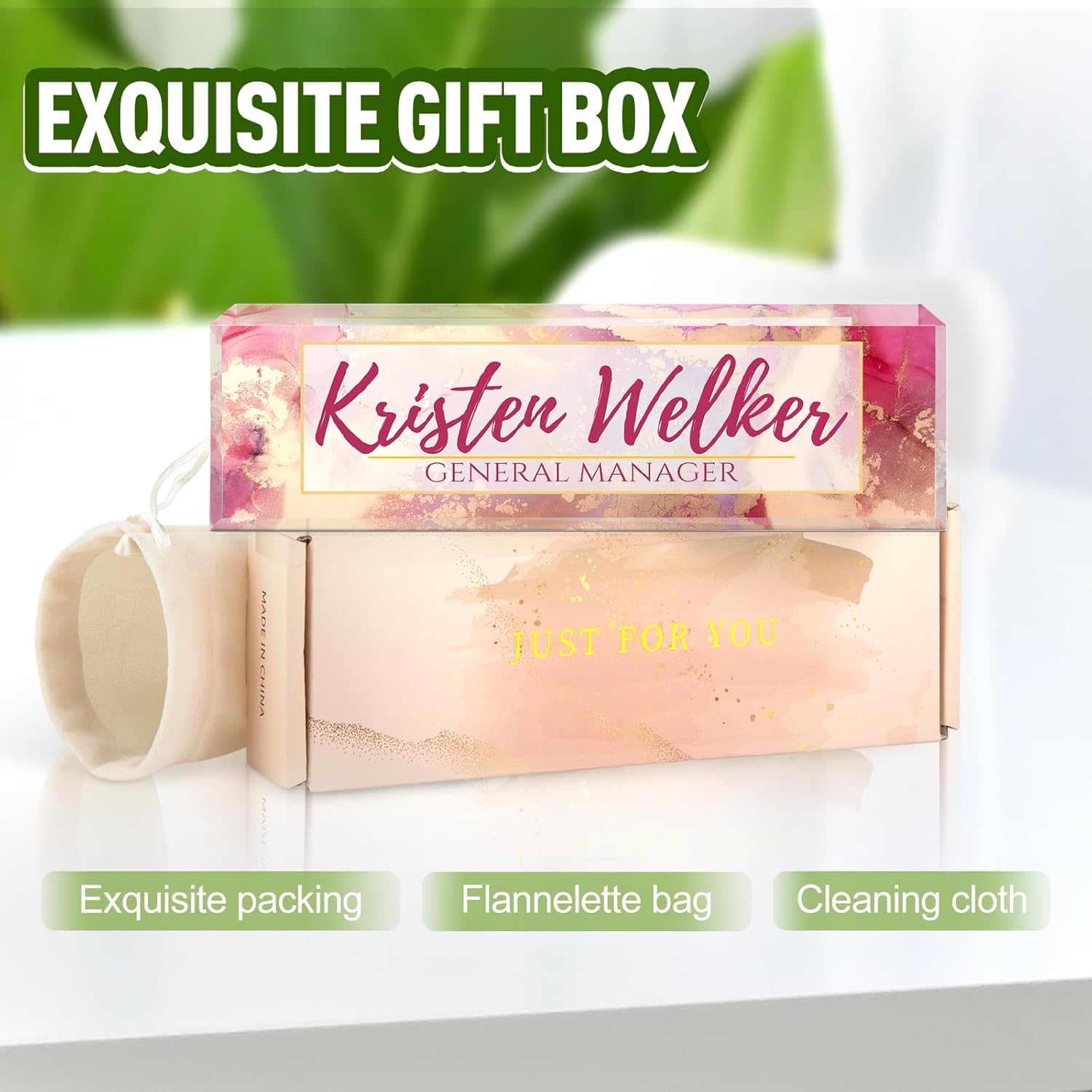 - ✨Personalized Acrylic Desk Name Plate: It's very easy to customize, you only need to choose your favorite design style, and then enter your name/title/company name/good wishes, whatever you want to display. But make sure to enter your custom text the way you want it (uppercase vs. lowercase, full title vs. abbreviation, etc.). Please make sure you write it correctly, we have professional designers to design it, you will be amazed how professional your finished nameplate looks!