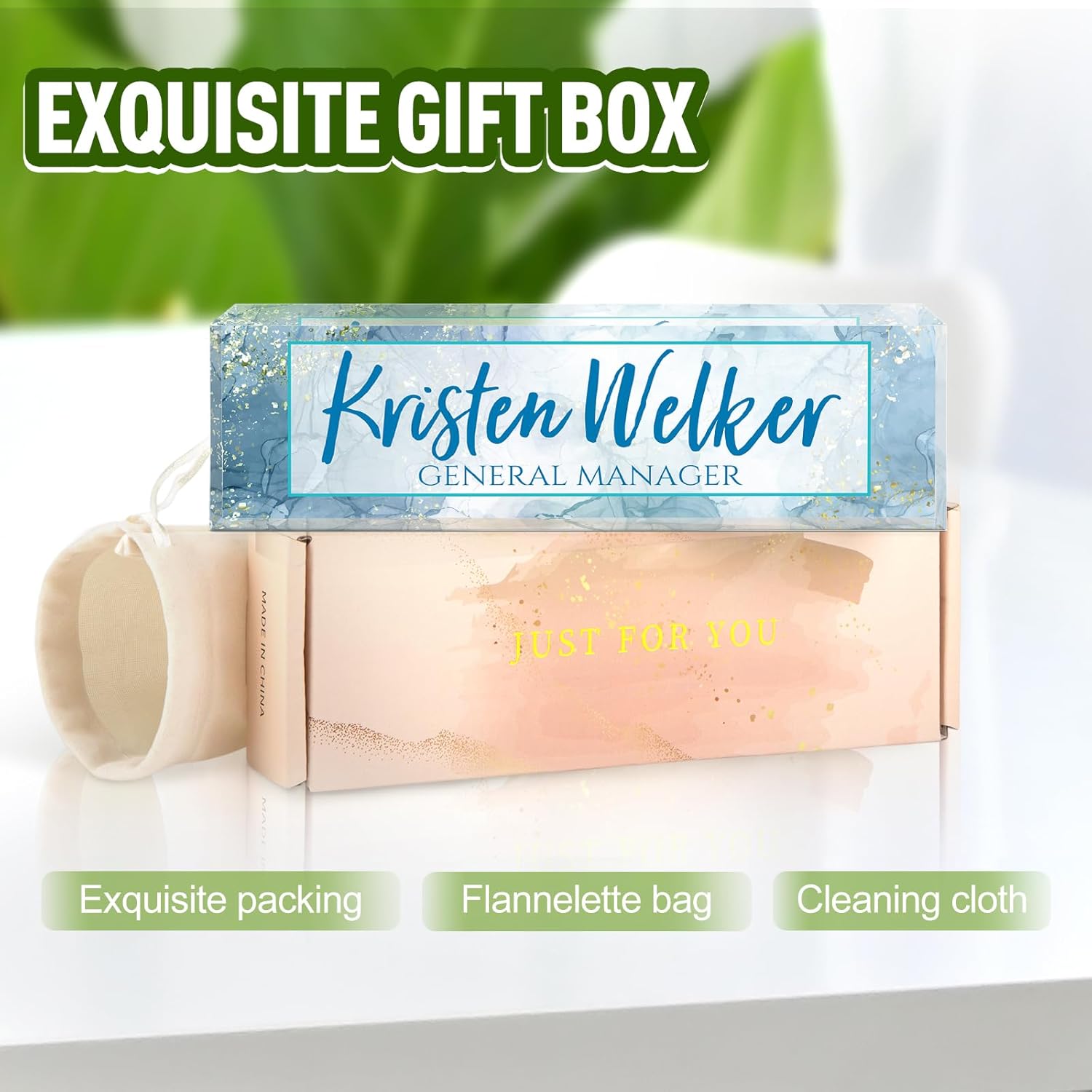 - ✨Personalized Acrylic Desk Name Plate: It's very easy to customize, you only need to choose your favorite design style, and then enter your name/title/company name/good wishes, whatever you want to display. But make sure to enter your custom text the way you want it (uppercase vs. lowercase, full title vs. abbreviation, etc.). Please make sure you write it correctly, we have professional designers to design it, you will be amazed how professional your finished nameplate looks!