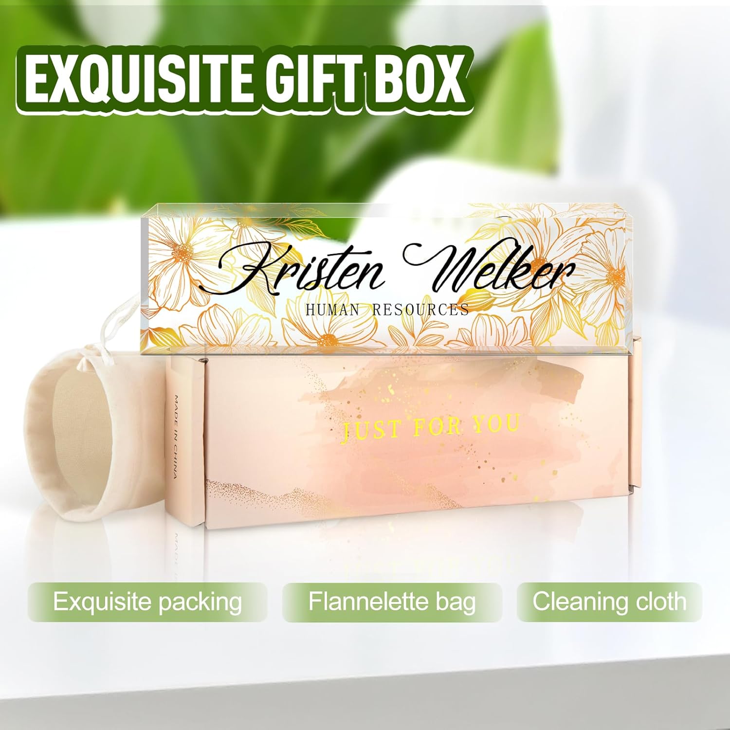 - ✨Personalized Acrylic Desk Name Plate: It's very easy to customize, you only need to choose your favorite design style, and then enter your name/title/company name/good wishes, whatever you want to display. But make sure to enter your custom text the way you want it (uppercase vs. lowercase, full title vs. abbreviation, etc.). Please make sure you write it correctly, we have professional designers to design it, you will be amazed how professional your finished nameplate looks!