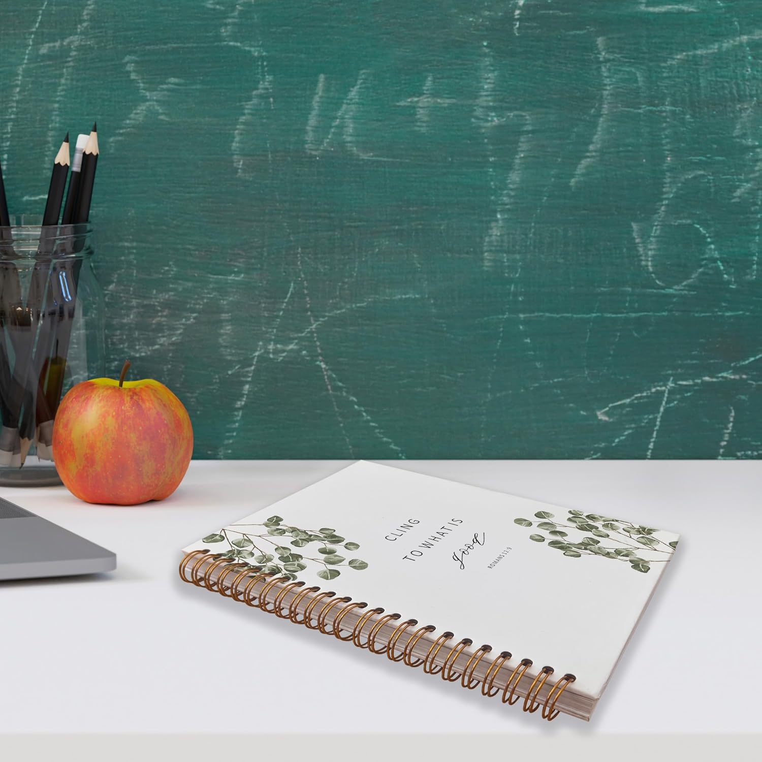 VNWEK Bible Scripture Romans 12:9 Cling to What is Good Motivational Eucalyptus Leaf Spiral Notebook Journal 5.5 x 8.3 inches,Christian Lined Hardcover Spiral Notebook,Christian Gifts