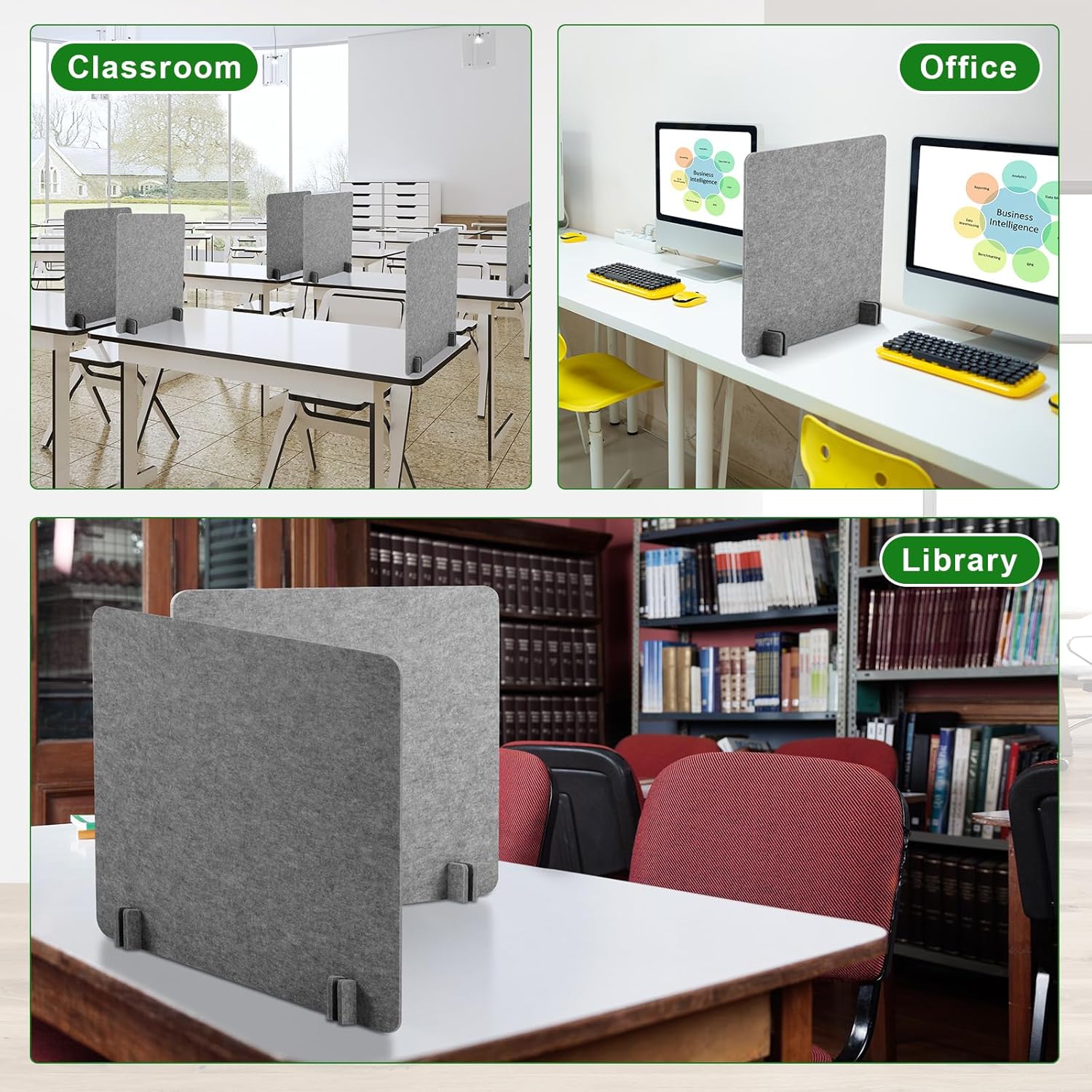 - Multiple uses: these desk partitions can designate specific areas for different tasks, such as a quiet reading space or a collaborative space for group projects; Also separate departments or teams within a larger workspace to promote focus and efficiency; Use in the classroom to separate students during testing or independent work; Divide work areas in the home to allow different family members to work and study