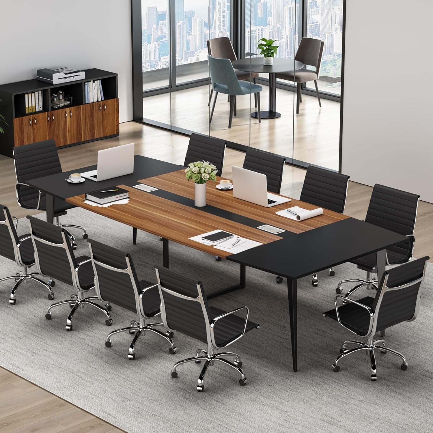 - ăModern & Natural StyleăComes in a beautiful walnut and black colorway, our conference table has beautiful appearance. It is perfect for your contemporary private or open-concept office space. Meanwhile,the boat curve design enables your team to see everyone around the table