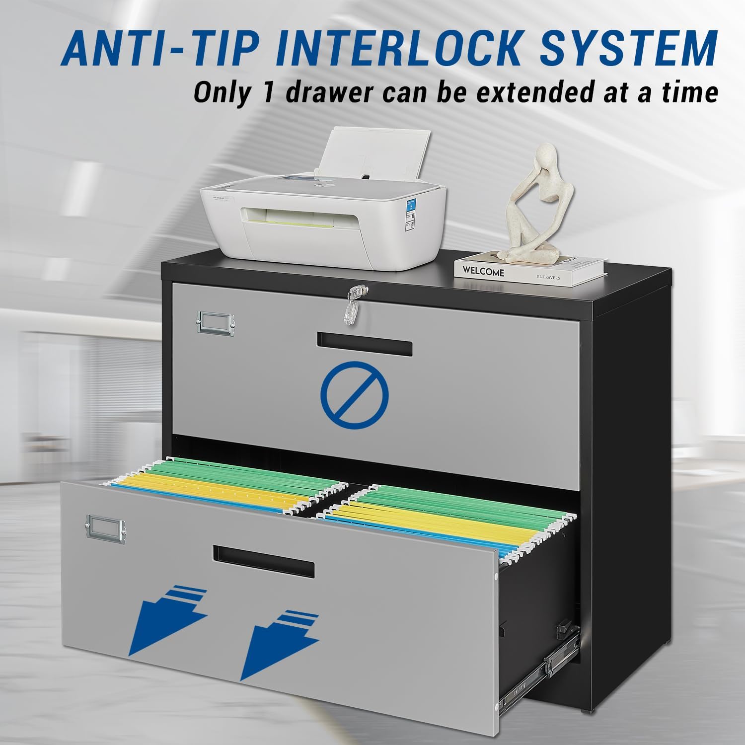 2 Drawer Lateral File Cabinet with Lock, Metal Steel Filling Cabinets for Home Office, Lockable Storage Cabinet for Hanging Files Letter/Legal/F4/A4 Size-Assembly Required