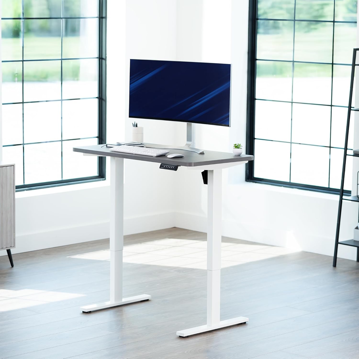 VIVO Electric 43 x 24 in Standing Desk, Memory Height Adjustment, 1B Series, One-Piece Dark Gray Top, White Frame, DESK-KIT-1W4G