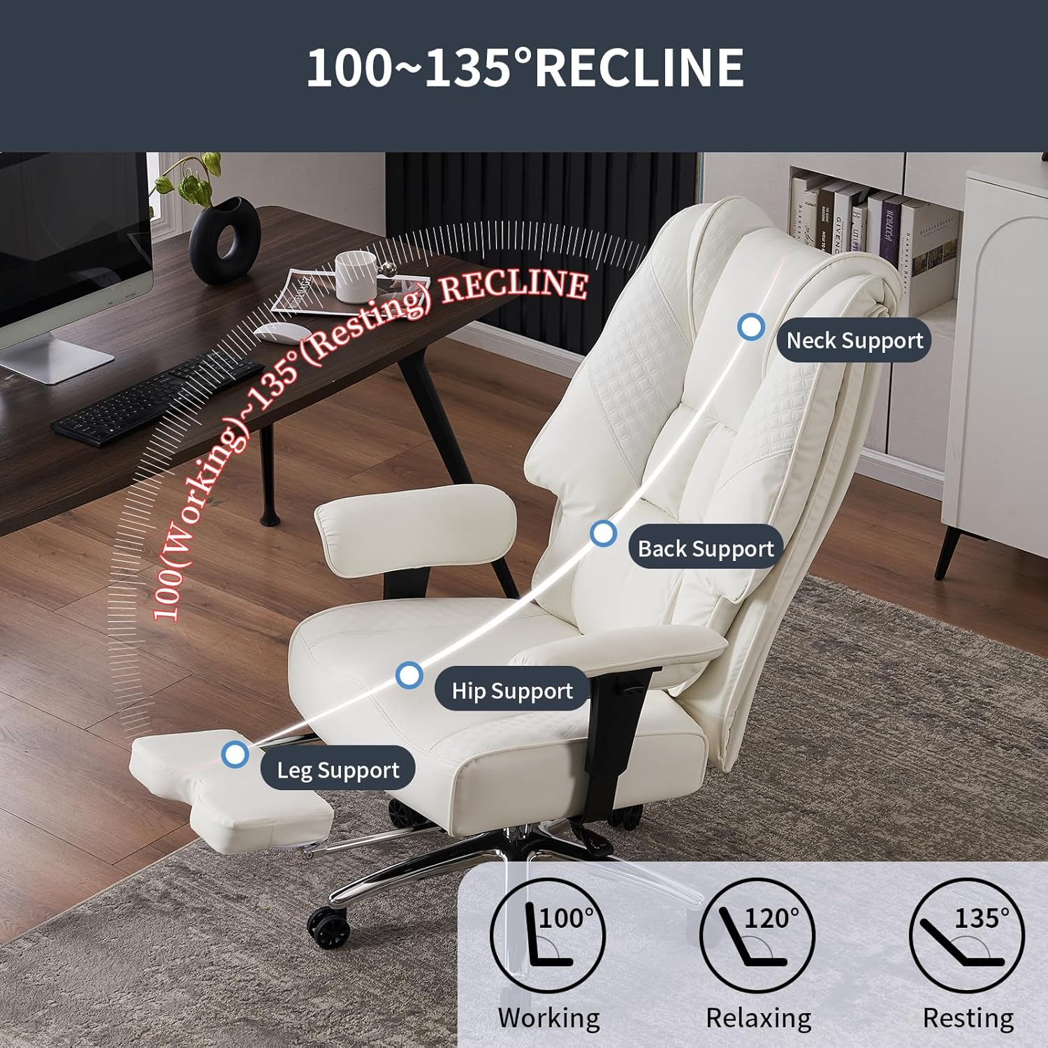 - Multifunctional Adjustability: With a robust 400lbs weight capacity, the reclining office chair offers adjustable recline angles, armrests, seat height, and a retractable footrest for a customized fit. Its 360-degree swivel feature provides easy access to your entire workspace