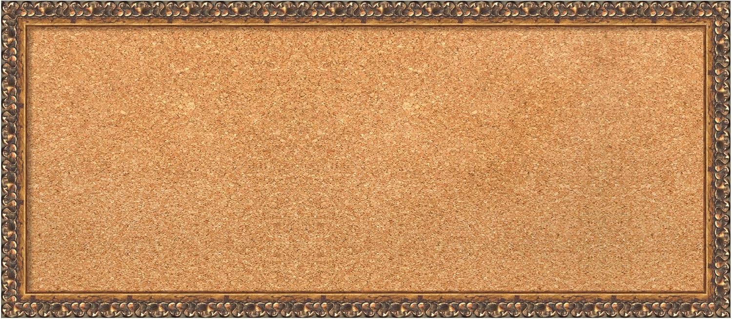 Amanti Art Natural Cork Board for Wall, 14x32 Vision Board with Bronze Frame, Medium Corkboard Office Decor for Home Organization, Traditional Corkboard Pinboard to Display Items for Home
