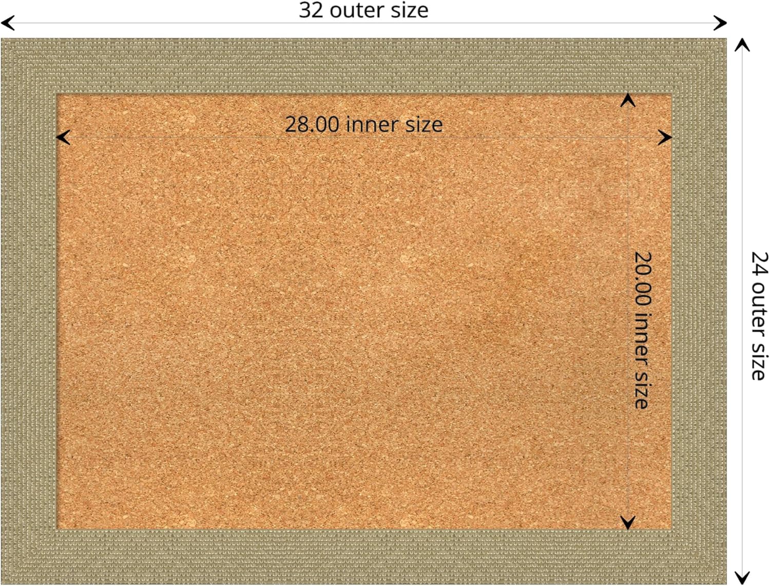 - DIMENSIONS: The overall size of this framed cork board measures 32 in. x 24 in., including the frame. Its functional cork board area measures 28 in. x 20 in.