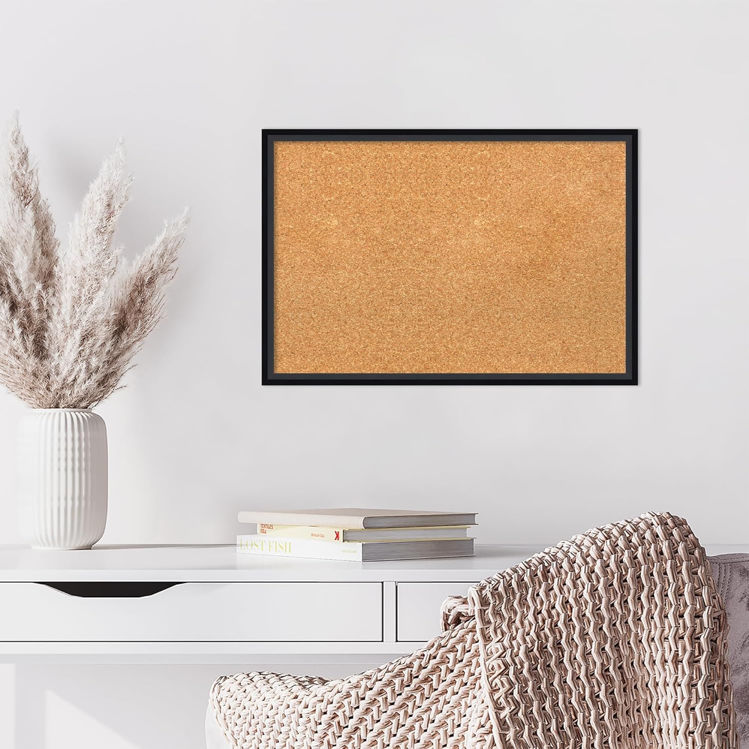 Amanti Art Natural Cork Board for Wall, 17x25 Vision Board with Black Wood Frame, Medium Corkboard Office Decor for Home Organization, Modern Contemporary Corkboard Pinboard to display items for home