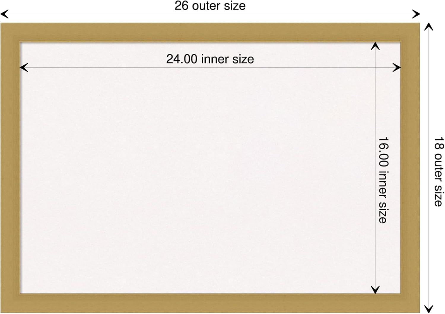 - DIMENSIONS: The overall size of this framed cork board measures 26 in. x 18 in., including the frame. Its functional cork board area measures 24 in. x 16 in.