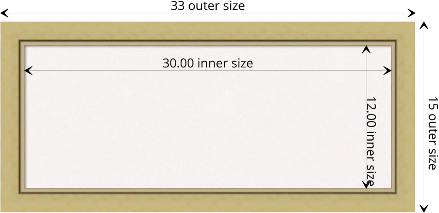 Amanti Art White Cork Board for Wall, 15x33 Vision Board with Gold Frame, Medium Corkboard Office Decor for Home Organization, Casual Corkboard Pinboard to display items for home organization