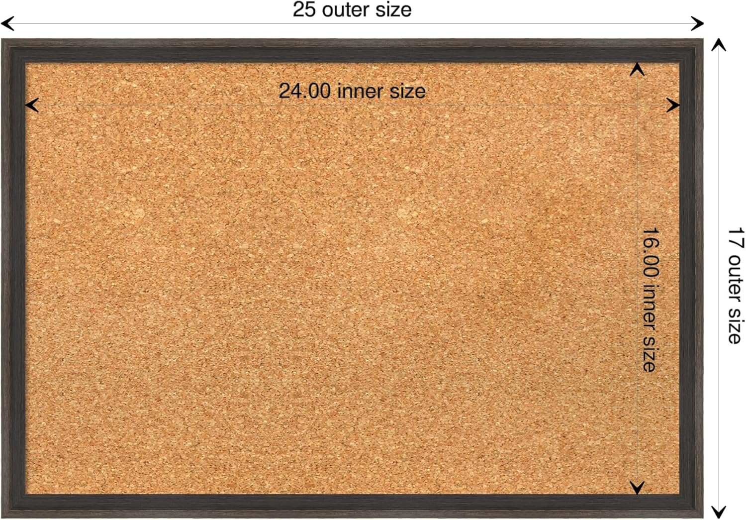 - DIMENSIONS: The overall size of this framed corkboard measures 25 in. x 17 in., including the frame. Its functional cork board area measures 24 in. x 16 in.