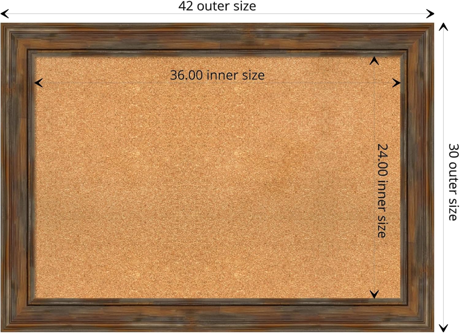 - DIMENSIONS: The overall size of this framed corkboard measures 42 in. x 30 in., including the frame. Its functional cork board area measures 36 in. x 24 in.