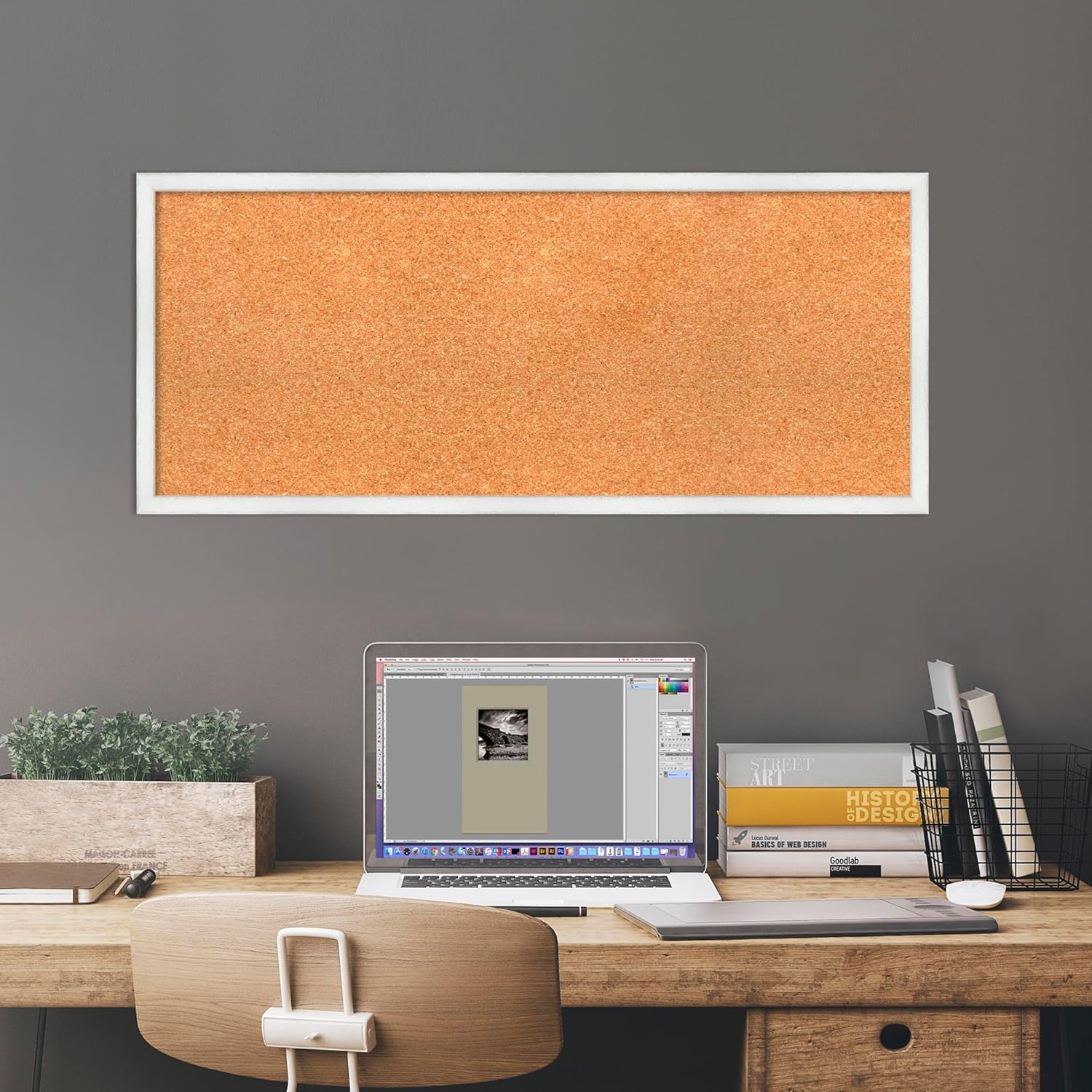 Amanti Art Natural Cork Board for Wall, 15x35 Vision Board with White Frame, Medium Corkboard Office Decor for Home Organization, Country Rustic Corkboard Pinboard to Display Items for Home