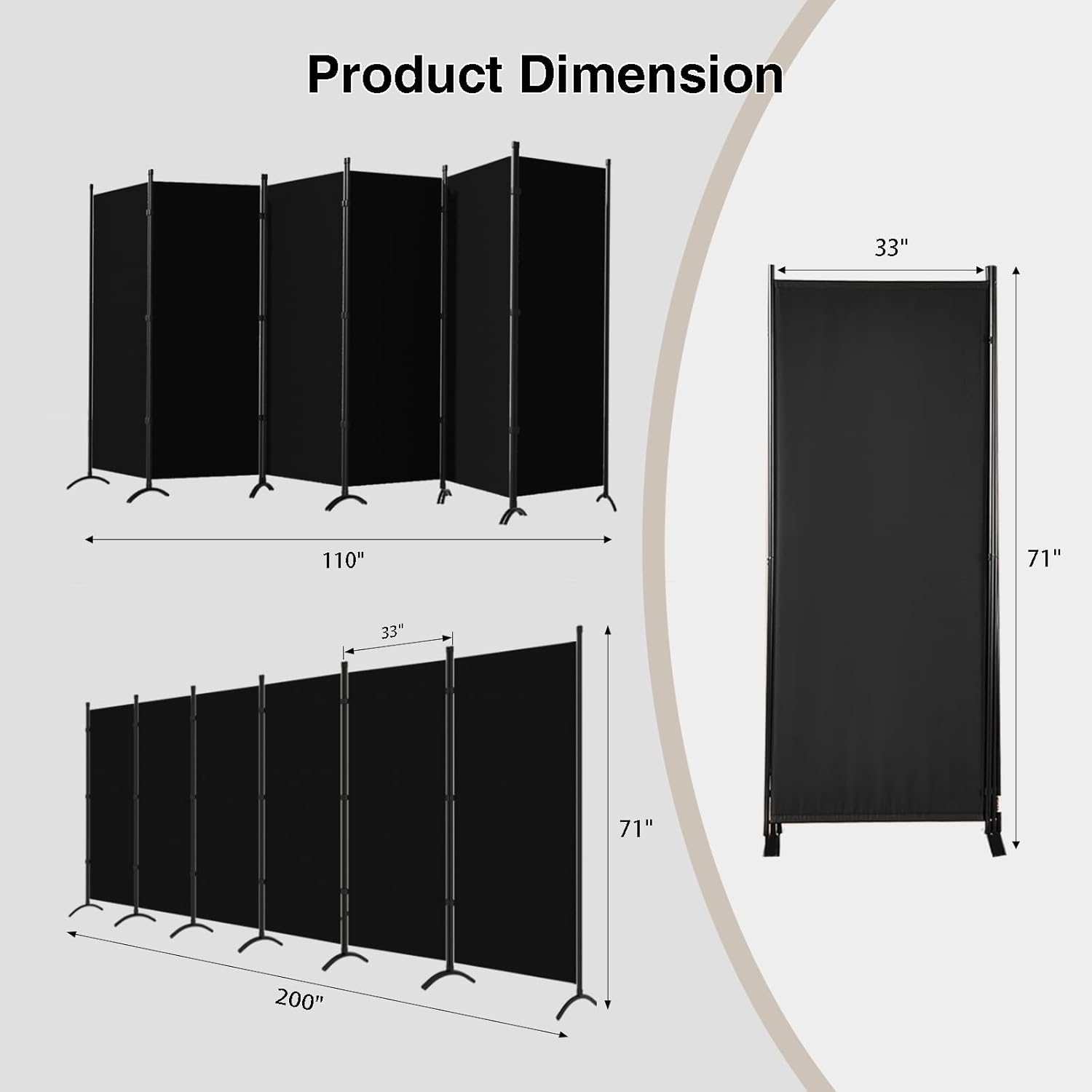 - 【Create Private Space】70''H x 200W'', Room dividers are large enough for anyone who lives with others, such as in a dorm or apartment, and it allows you to carve out your own space. It can also be used as a backdrop for photos, conference calls, and interviews