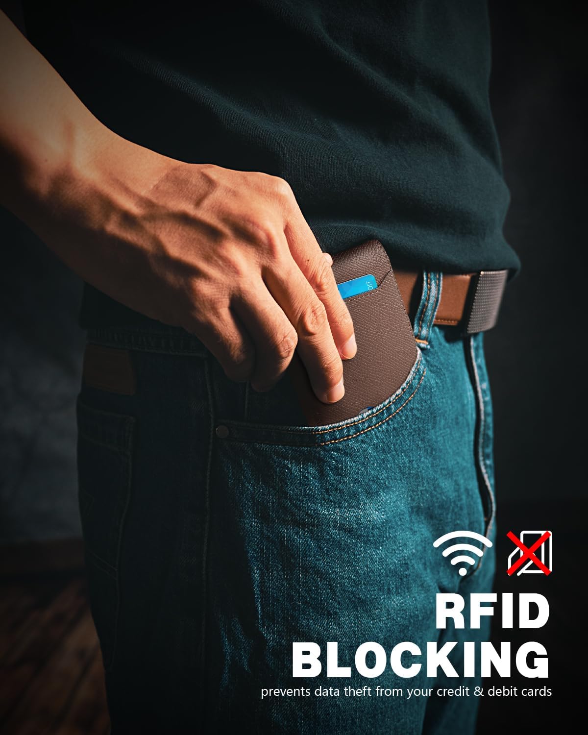 - RFID Blocking - This wallet for men are designed by German designer, made of genuine leather material, durable, wear- resistant and scratch-resistant. Our wallets block the 13.56 MHz band and protect against data theft by RFID scanners