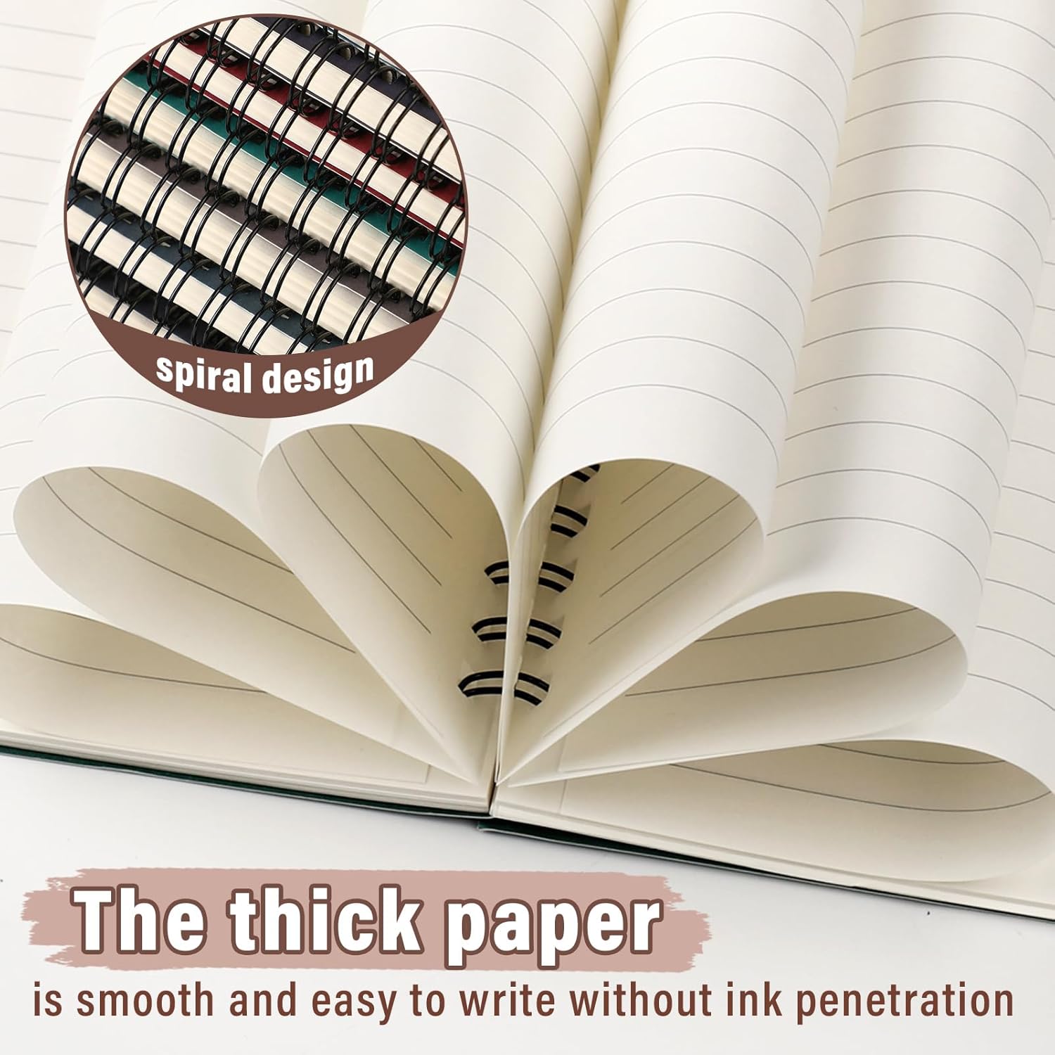 - Smooth to Write: each spiral journal notebook has 60 sheets (120 pages), and each page adopts quality 80gsm white paper, smooth and easy to write, preventing ink infiltrating into the next page, and mild colors can avoid eye fatigue and bring comfortable experience