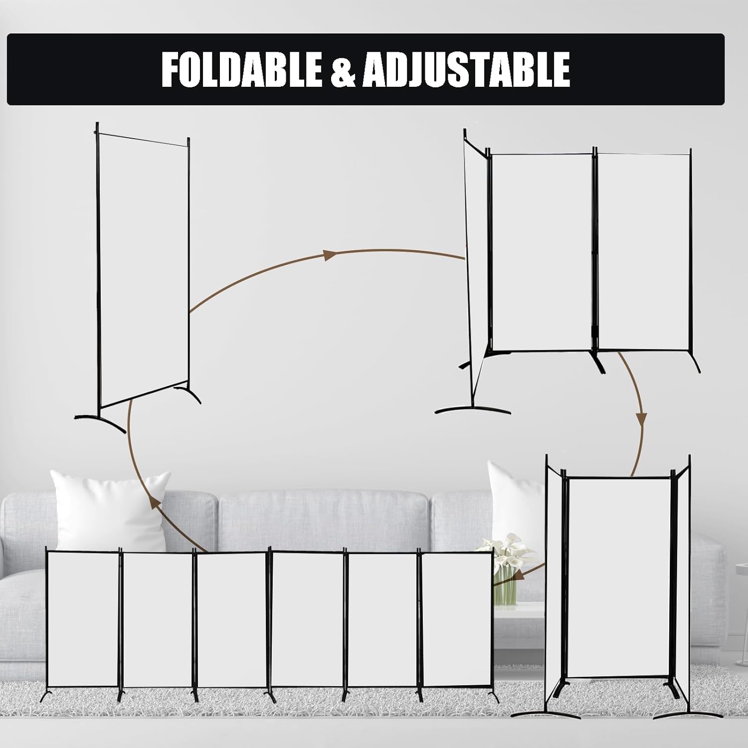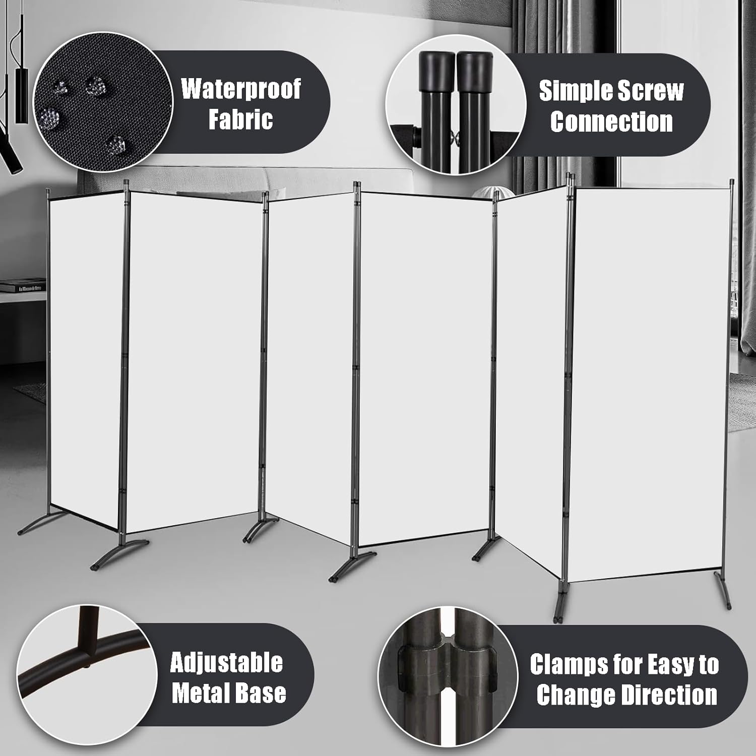 Room Divider-6 Panels White Folding Privacy Screens, 6 ft Partition Room Dividers Wall for Separation, Home, Office, Classroom, Studio