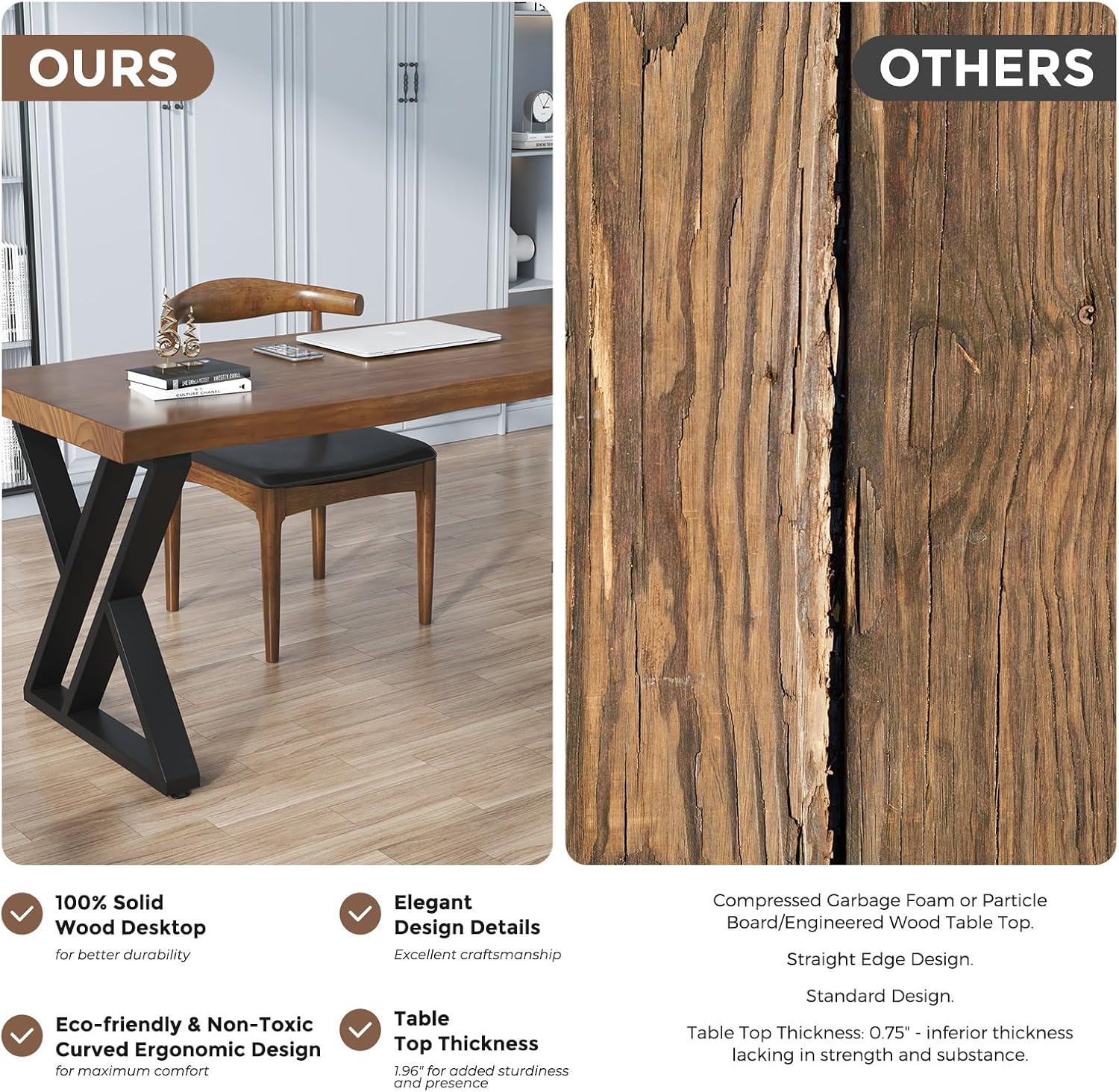 Rustic Style Solid Wood 55-inch Computer Desk - Large Office Desk for Home Office, Modern and Simple Design, Ideal for Study, Writing, Dining