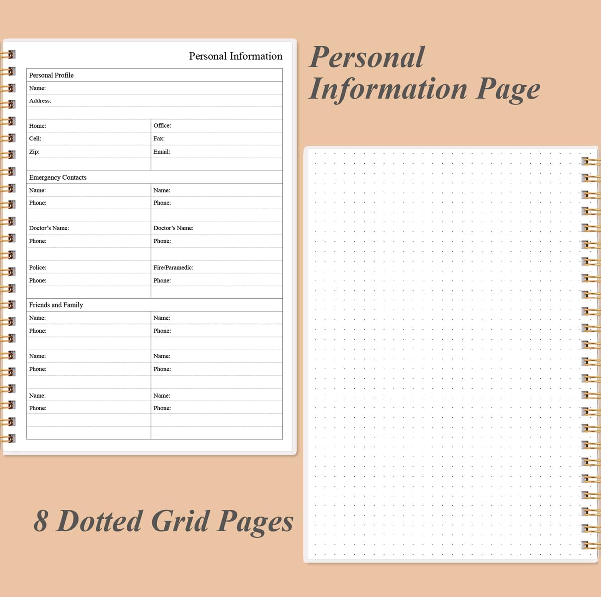 - A5 SIZE - This undated daily organizer size of 8.5 x 5.8 inch, perfect size to fit in your bag.1 quick reference page, contact pages, important dates page, and 75sheet (150 page) daily plan & notes,8 dotted grid pages, Undated appointment planner makes it easy for you to start the planner at any time.