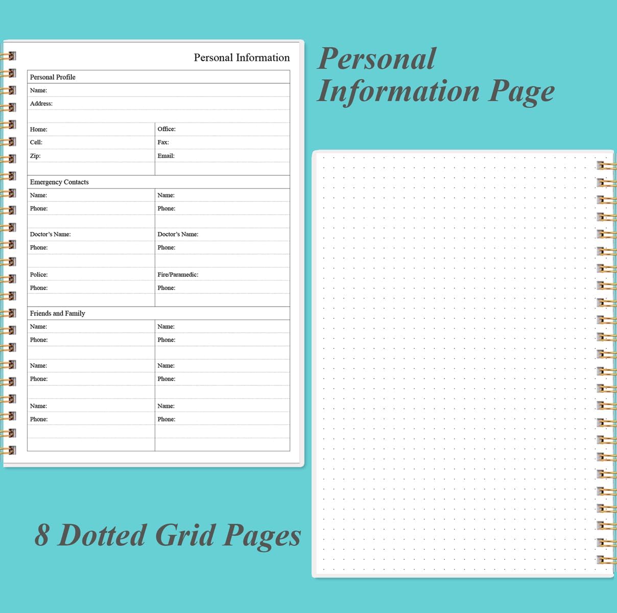 - A5 SIZE - This undated daily organizer size of 8.5 x 5.8 inch, perfect size to fit in your bag.1 quick reference page, contact pages, important dates page, and 75sheet (150 page) daily plan & notes,8 dotted grid pages, Undated appointment planner makes it easy for you to start the planner at any time.