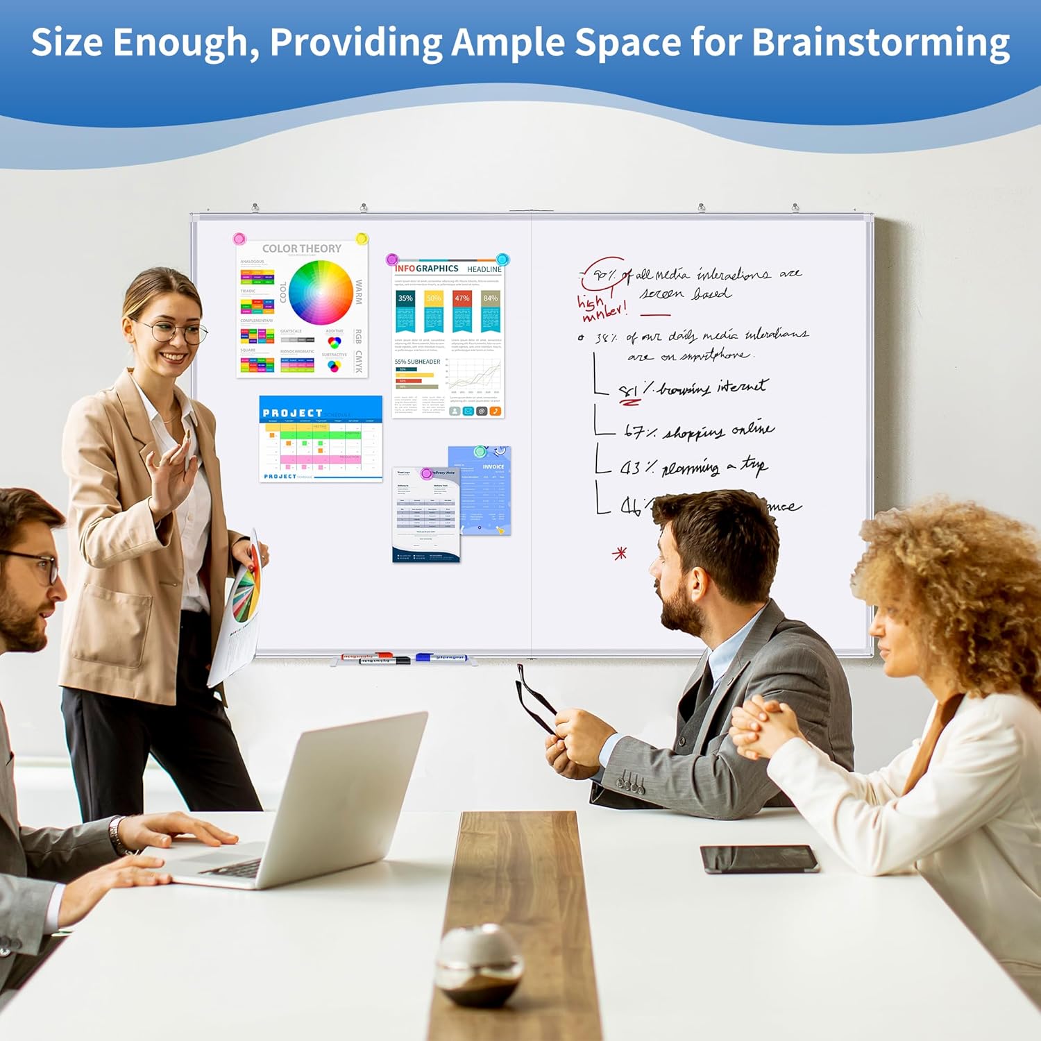 Magnetic Whiteboard Dry Erase, 48 x 36 inch Large White Board for Wall, Foldable Aluminum Frame Hanging Whiteboards for Home Classroom Office