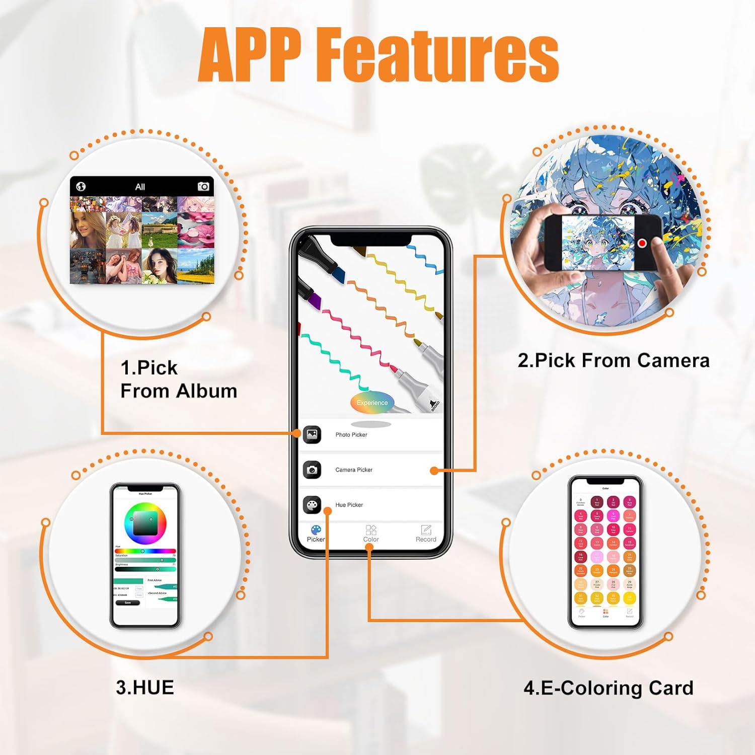 - PERFECT COLOR MATCHING WITH APP: Our professional alcohol coloring markers comes with free App that allows you to quickly find the right marker and achieve the perfect color for your painting. Our dual tip alcohol marker for artist solves the problem of color difference and inability to quickly identify markers in other products, making it very suitable for beginners and advanced users
