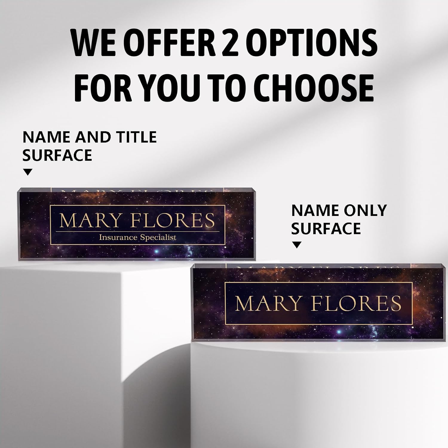 Acrylic Name Plate Personalized, Teacher Name Plates for Desks Classroom, Gifts for Teacher Boss Employee Appreciation Office Desk Decor (Galaxy 3)