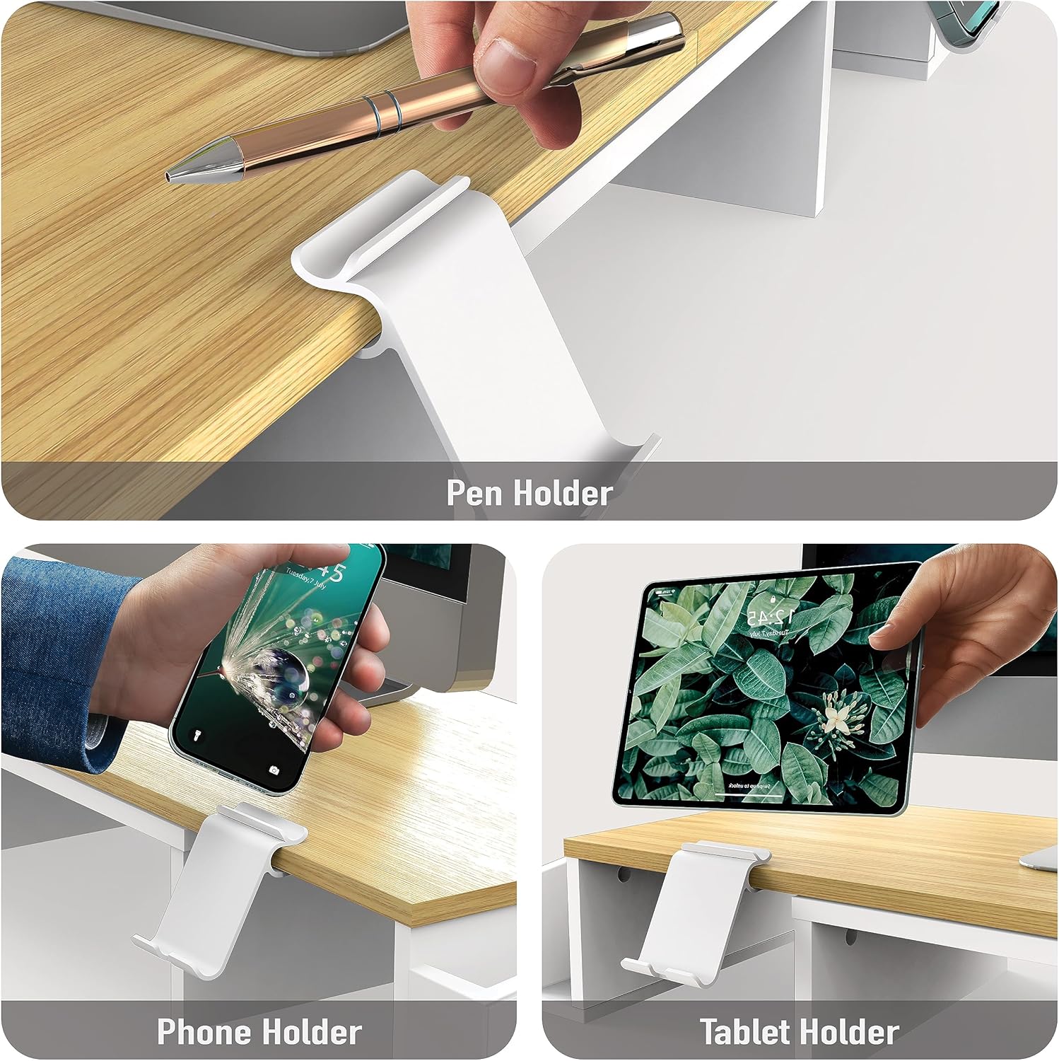 - Built-In Phone & Tablet Holder - Keep your screen in sight for calls, videos, or multitasking while you work.