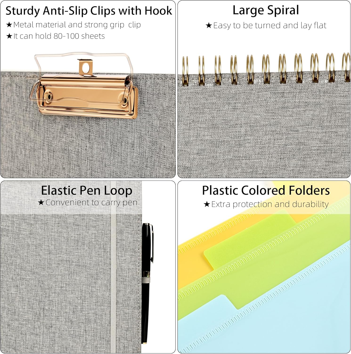 - 【Versatile Organizer】The spiral clipboard folio with folders is a versatile tool for students, teacher, nurse, professionals, artists, travelers, business, school, and anyone who needs to stay organized. Perfect for storing notes, documents, sketches, and more. It is a great gift for friends, family, and loved ones on birthdays, the school year, Christmas, Thanksgiving, or New Year,etc.