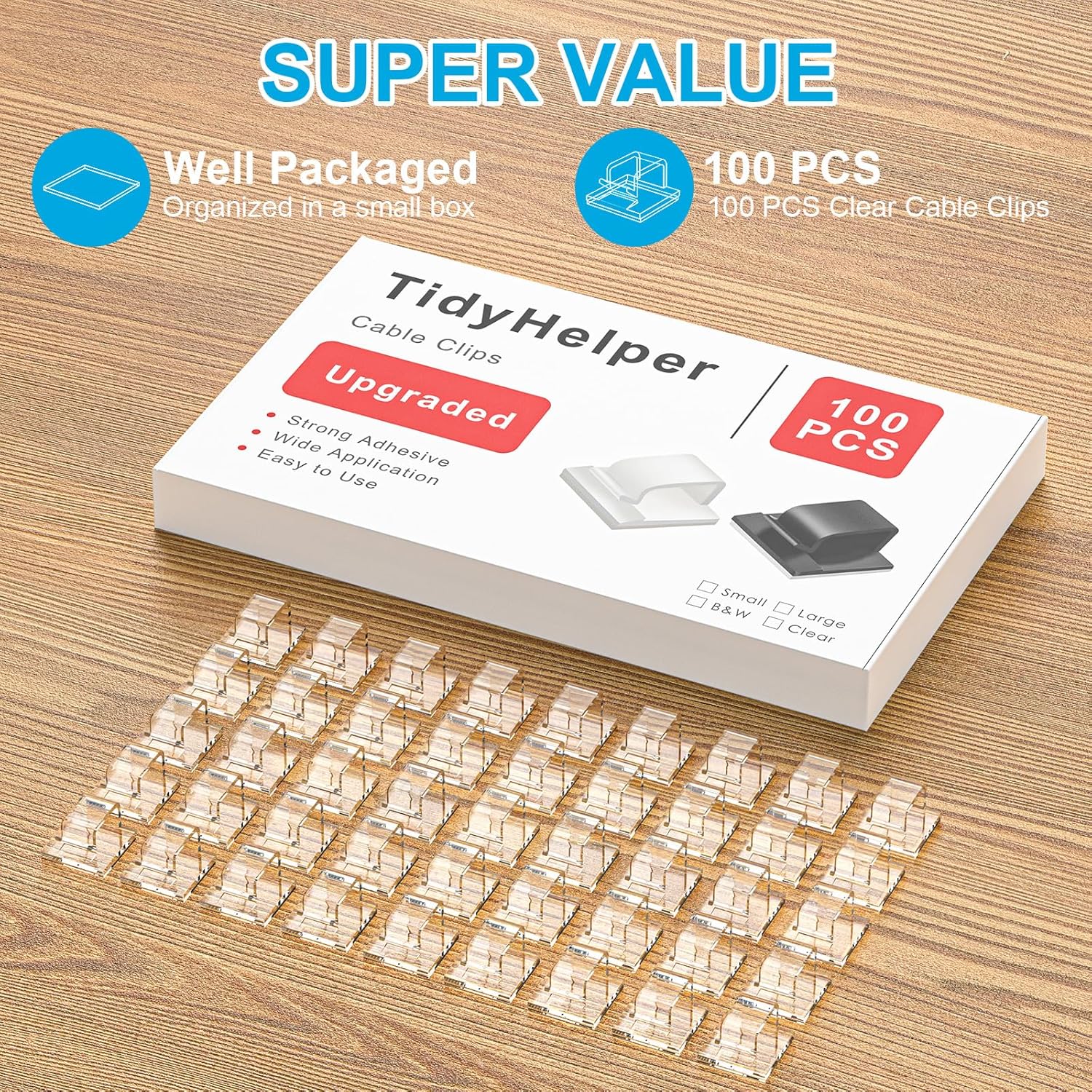 - Adhesive cable clips: Made of eco-friendly premium PA66 material, super sticky transparent back tape (pre-installed), easily peel off backing, which makes our wire holder clips sturdy and durable, easy to remove without any residues and damage.