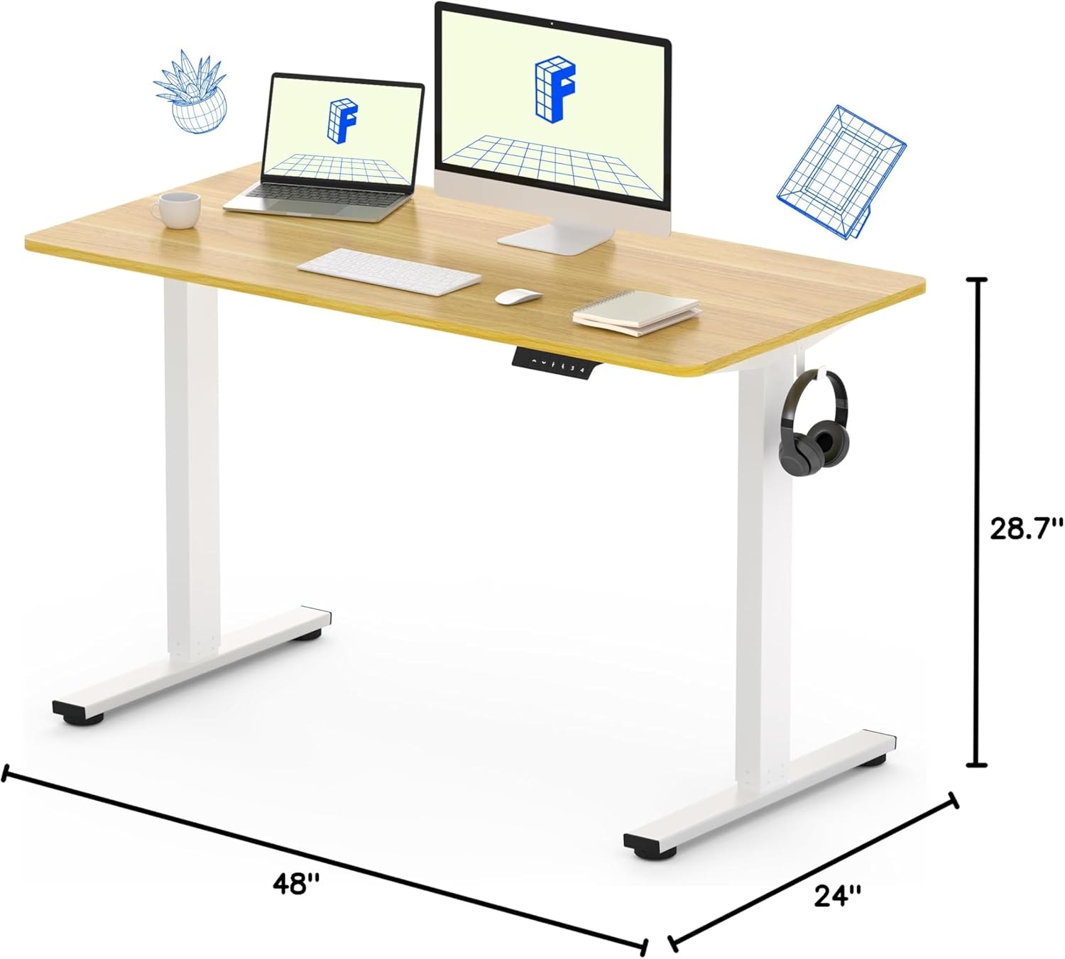FLEXISPOT EN1 One Piece Standing Desk, 48 x 24 Inches Height Adjustable Desk Electric Stand up Desk Home Office Table for Computer Laptop (White Frame + Maple Desktop)