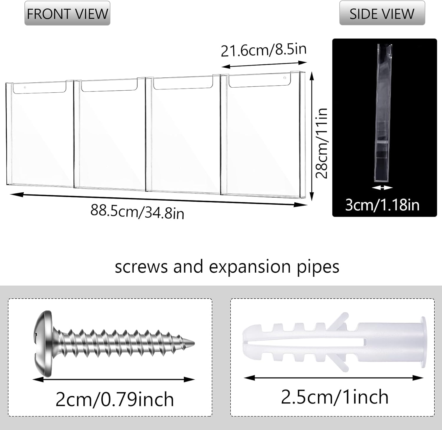 - Simplified Installation: the acrylic magazine holder comes with mounting screws and expansion tubes, so you can place our clear magazine holder horizontally and vertically with these small accessories, easy and convenient, the installation can be achieved within minutes, not take up much time, so you will have your brochures as soon as possible