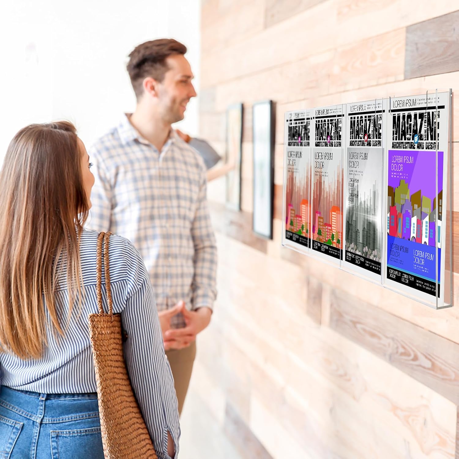 Barydat Acrylic Brochure Holder, 8.5 x 11 Inch Flyer Magazine Display Wall Mount Pamphlet Rack Clear Plastic Brochure Stand Literature Holder for Office Classroom Home (4 Pockets)