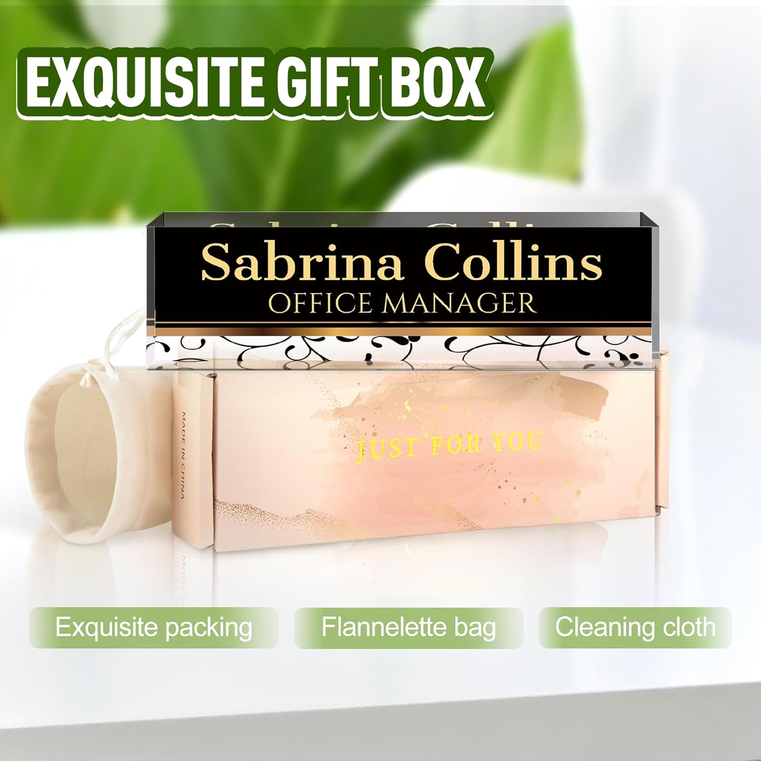 - ✨Personalized Acrylic Desk Name Plate: It's very easy to customize, you only need to choose your favorite design style, and then enter your name/title/company name/good wishes, whatever you want to display. But make sure to enter your custom text the way you want it (uppercase vs. lowercase, full title vs. abbreviation, etc.). Please make sure you write it correctly, we have professional designers to design it, you will be amazed how professional your finished nameplate looks!