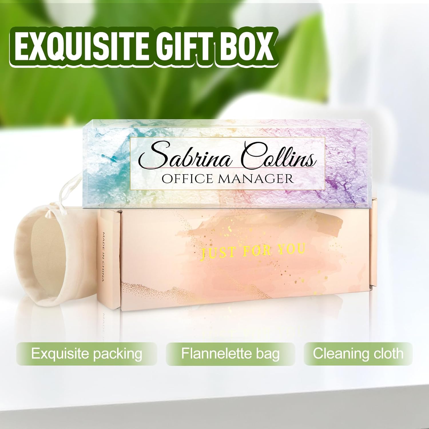 - ✨Personalized Acrylic Desk Name Plate: It's very easy to customize, you only need to choose your favorite design style, and then enter your name/title/company name/good wishes, whatever you want to display. But make sure to enter your custom text the way you want it (uppercase vs. lowercase, full title vs. abbreviation, etc.). Please make sure you write it correctly, we have professional designers to design it, you will be amazed how professional your finished nameplate looks!