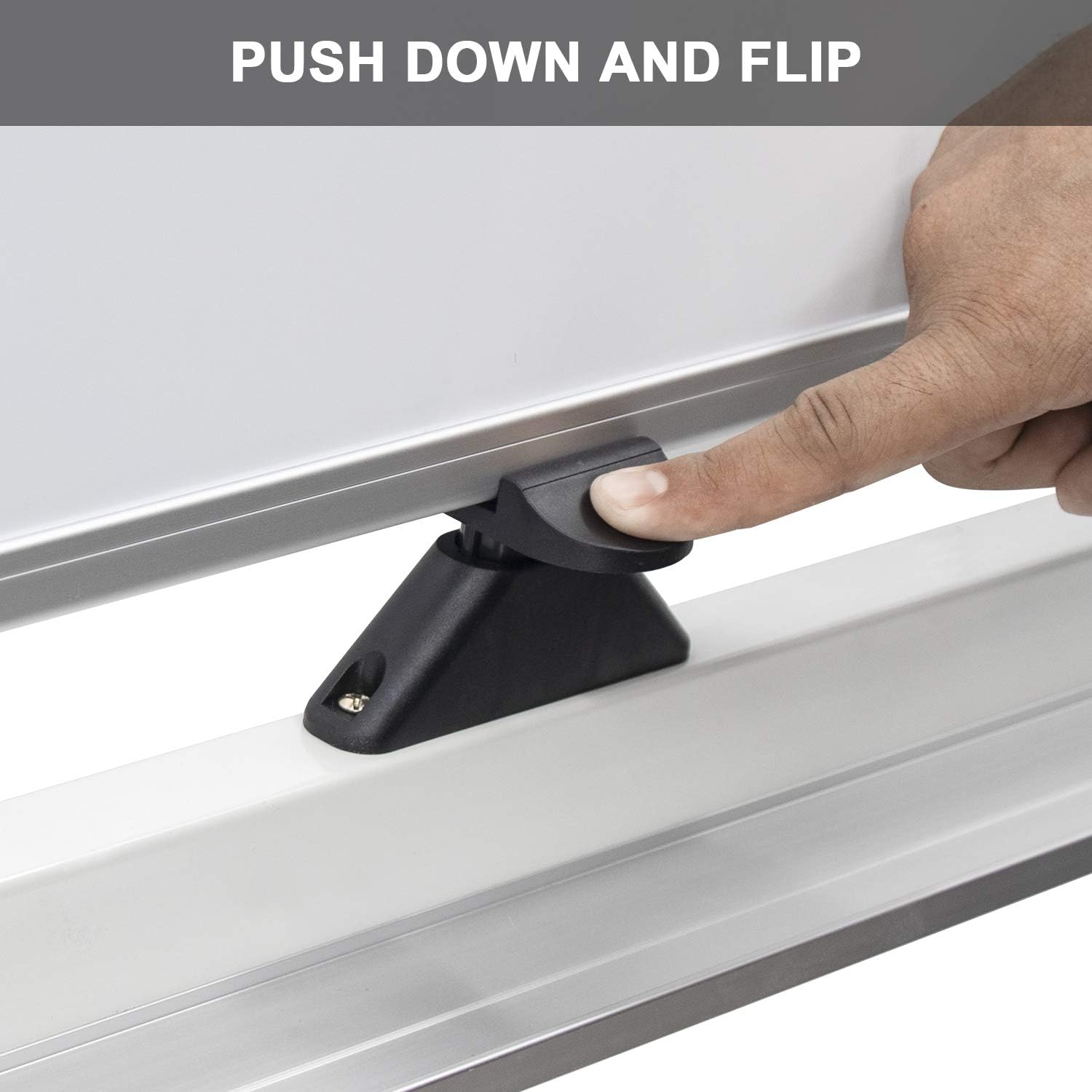 - ★★★EASY TO ERASE SURFACE & EASY FLIP DOUBLE SIDED MAGNETIC DRY ERASE BOARD: Our large 48" x 36" lacquered steel mobile whiteboard allows for both easy erase cleaning and protection from dents and scratches. Quick Flip Over Reversible Feature, Flip the board to the other side with the press of a button. You have TWICE the writing space when you utilize BOTH sides of the portable rolling whiteboard with stand.