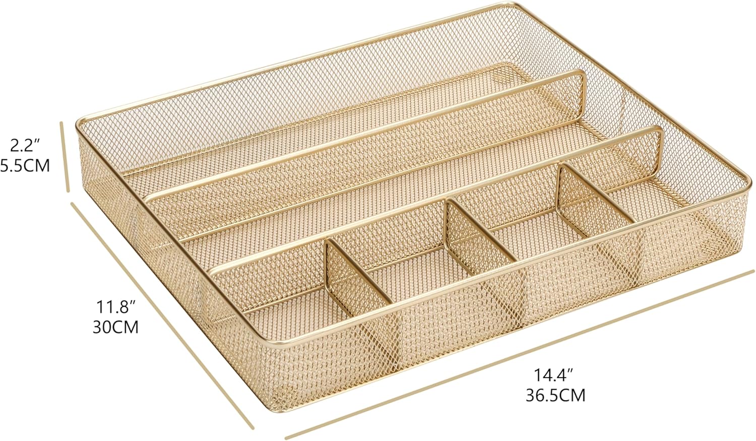 Annova Desk Top Organizer Tray for Office Organization - Metal Mesh - Storage Tray with Dividers for Pens, Desktop Accessories, Bathroom, Kitchen, Makeup and Office Supplies (Large, Gold)