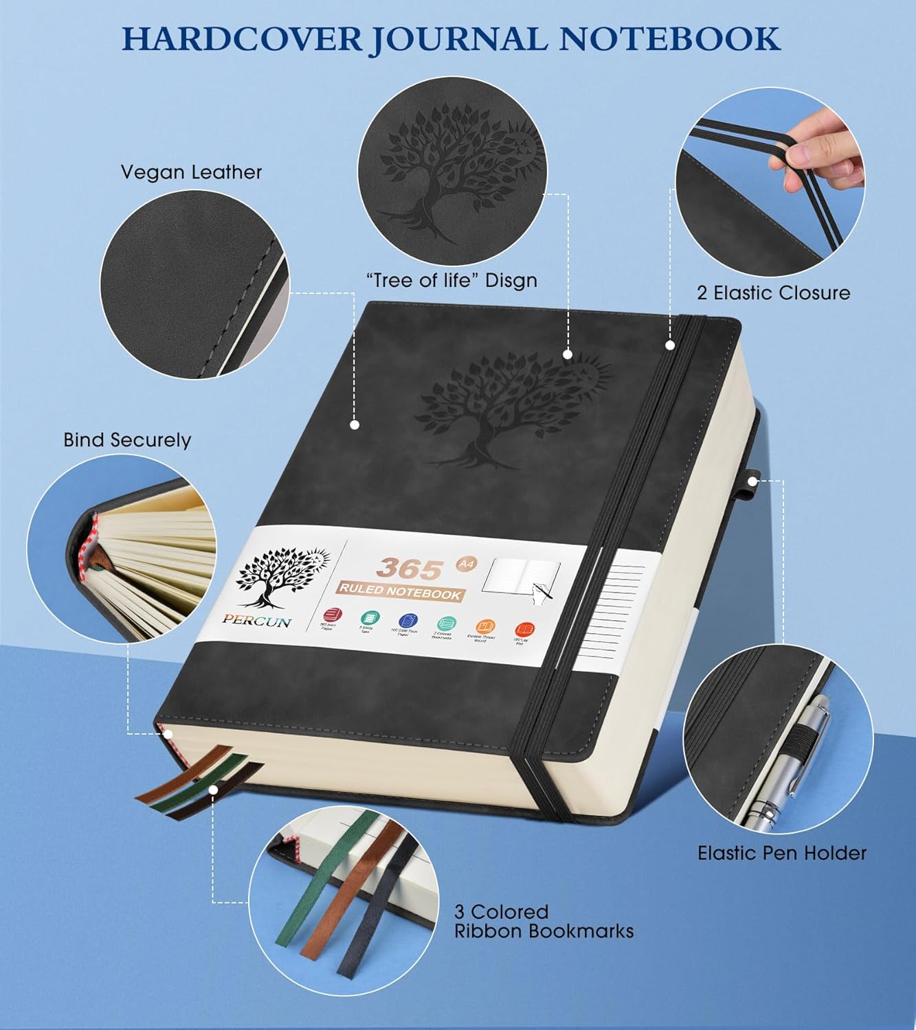 - 【365 Pages Premium Thick Lined Paper】: Our PERCUN lined journal notebook is made of 365 pages high-quality 100Gsm thick ruled pager with an acid-free light Ivory paper that is thicker than normal. This premium quality paper will not cause bleeding, ghosting or smudging and is suitable for most types of pens,provides ample space for journaling, note-taking, and creative writing. The line spacing is 7mm, making it easy to write legibly and neatly.