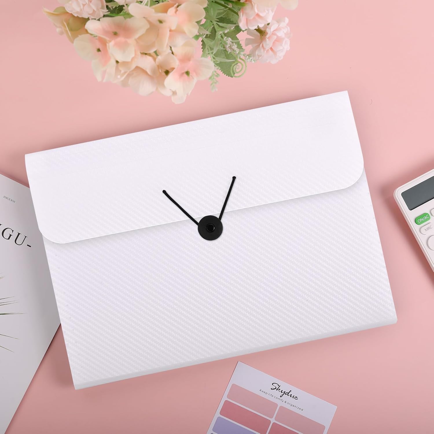 SKYDUE Expanding File Folder with 7 Pockets, Accordion File Organizer, Portable Folders for Documents, School Office Supplies Bungee Closure, Letter/A4 Size White